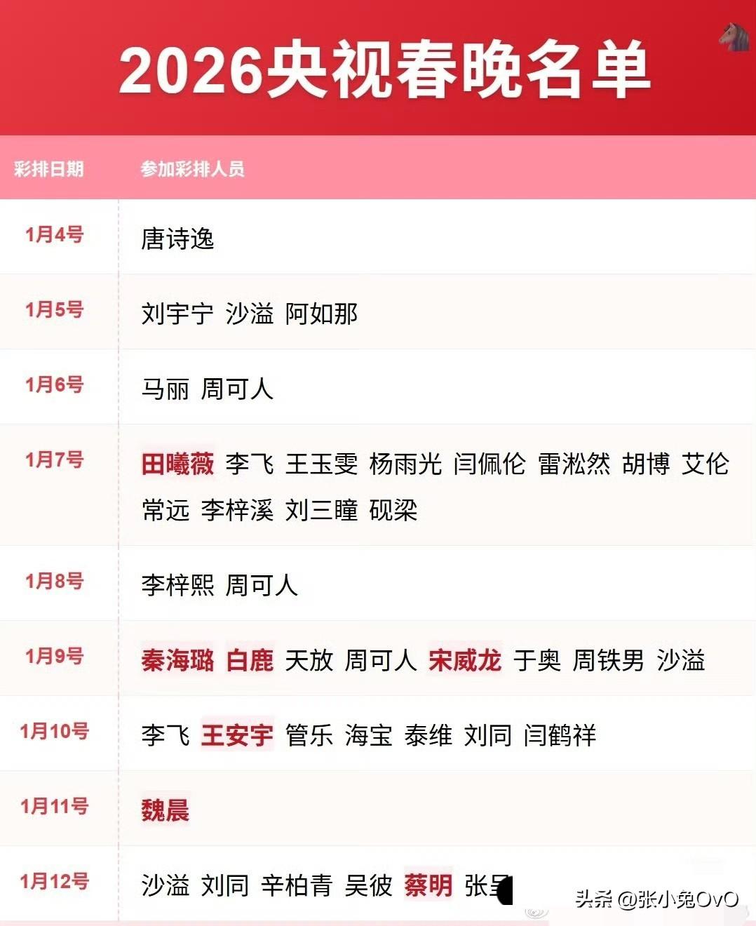 马年春晚 谁懂!2014年马年春晚还在眼前,《时间都去哪儿了》的旋律、小彩旗4小时旋转的名场面,居然已经一轮过去了,整整12年。 2026春晚年味十足,期待值拉满,沈马十搭、唐诗逸国风舞➕黑科技加持。蔡明时隔7年重回春晚表演。