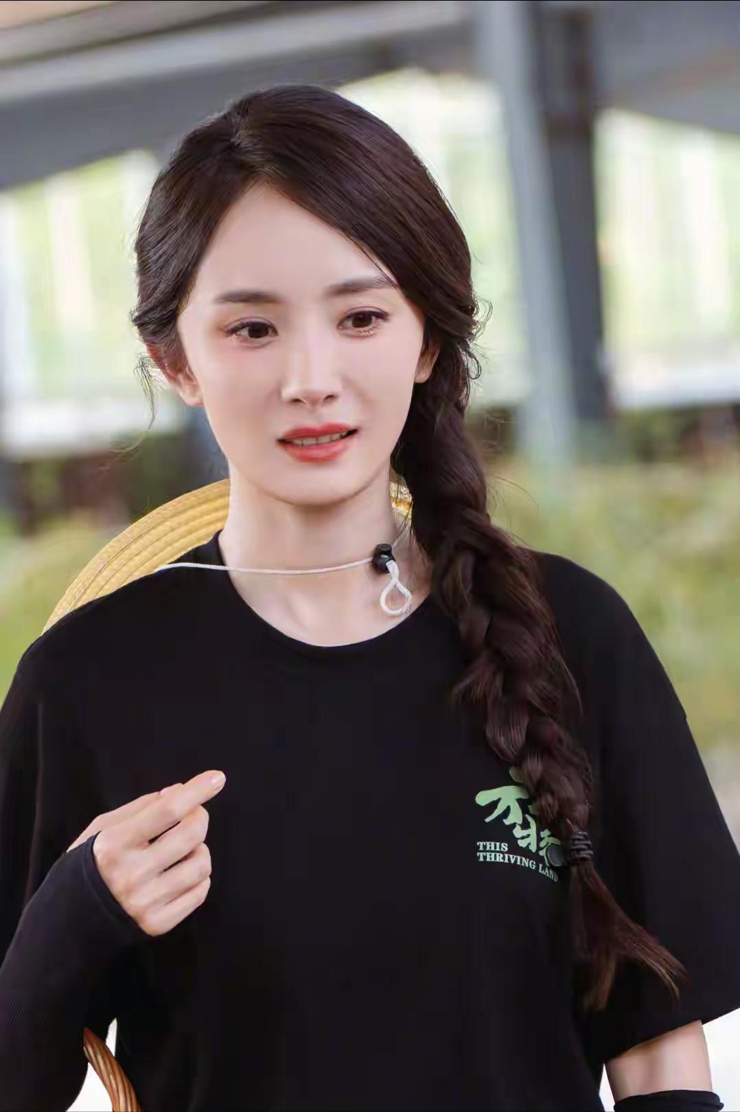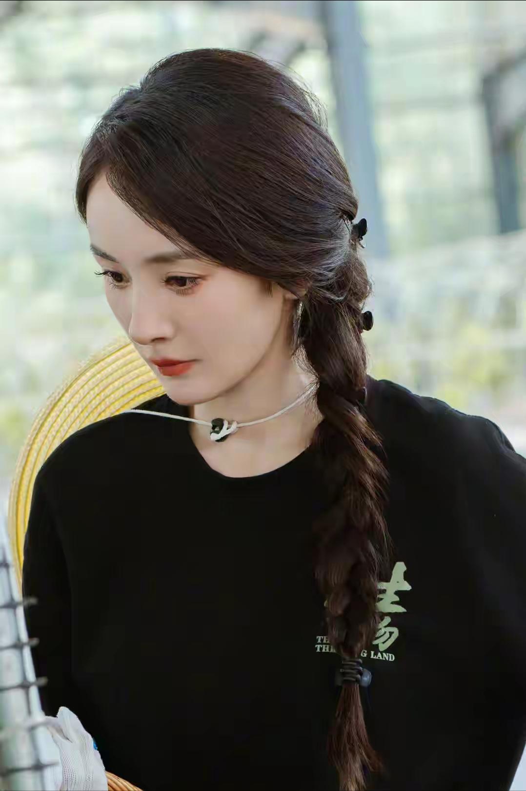 杨幂黑色搭配麻花辫,又甜又酷,美出新高度!