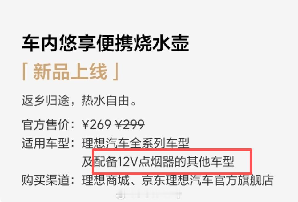 看到理想上线了一个新配件关于12V点烟器而诞生的便携烧水壶那看来确实理想也发现了i6和L6缺失220V电源这个事其实我身边不少三四口之家都是大5座的受众明年增程要改建议增程入门车型搭配上!理想汽车理想l6