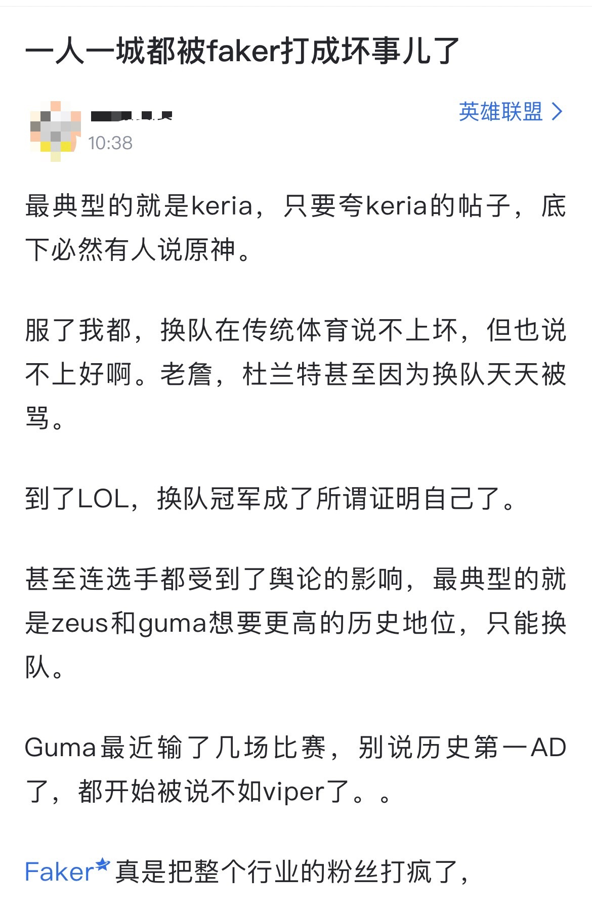 如何评价?网友热议:一人一城都被faker打成坏事儿了最典型的就是keria,只要夸keria的帖子,底下必然有人说原神。换队在传统体育说不上坏,但也说不上好啊。老詹,杜兰特甚至因为换队天天被骂。到了LOL,换队冠军成了所谓证明自己了。甚至连选手都受到了舆论的影响,最典型的就是zeus和guma想要更高的历史地位,只能换队。Guma最近输了几场比赛,别说历史第一AD了,都开始被说不如viper了。。2026lckfaker竞技游戏