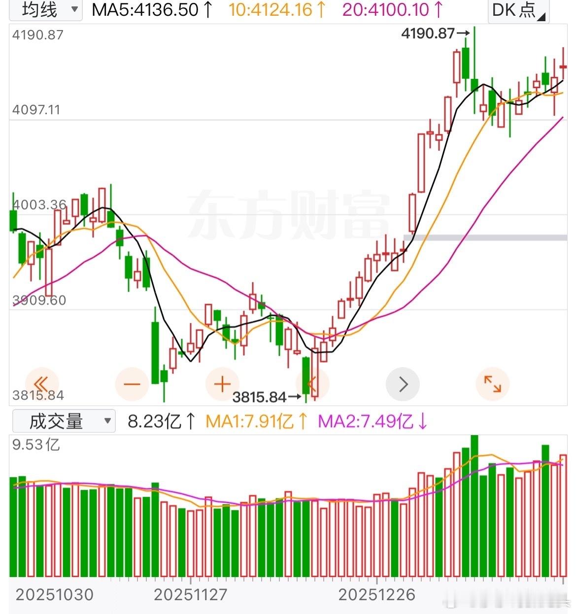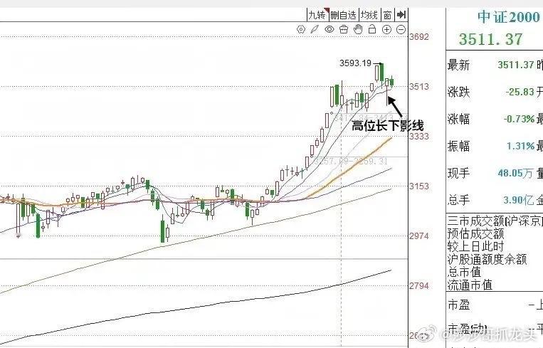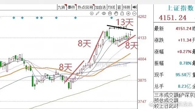 收评: A股放量收十字星,明天或是变盘日,莎莎今日踢到铁板了从今天市场的走势来看,上证指数今天高开全天震荡。最终收了一颗标准的十字星。但是从今天盘中的分时图,我们可以看出,上证指数盘中三次明显的快速回落。从分时的这种快速回落情况来看,短线指数确实分歧在加大。并且我们看到今天小盘个股延续了昨天的弱势走势,今天依然是全线普跌的状态。但是最终主力还是稳稳的将指数收在了红盘。关注莎莎的朋友都知道,昨天收盘之后我对于今天市场走势的判断是,今天市场或者收出一根比较明显的实体阴线大家请看图一。很明显莎莎的这个判断今天是再次踢到了主力的铁板。作为纯技术派的老手,今天再次遗憾败北!回到问题的重点?市场今天的成交量增加,而且我们看到最近几个交易日,市场的成交量都有明显增加的情况。那么这个位置,主力是向上准备进一步打开空间?还是短线出现了滞涨的迹象呢?在这里我对于接下来的走势讲三个观点,听完这三个观点之后,大家就知道接下来市场怎么走?以及咱们怎么应对了?第一,从今年元旦长假以来,市场的成交量从低量的状态,突然出现了持续的增量,而尤其是自从4190点以来,市场的平均成交额每天都维持在接近3万亿的水平。并且这样的放量持续了12个交易日了大家请看图二。莎莎认为市场的这种持续放量的行为,根据历史的经验来看,并不会一直持续下去,短线出现这种集中性的放量之后,往往市场需要进行一段时间的震荡修复性行情。第二,上证指数短线已经进入到变盘时间窗口,不仅是近期低点上涨以来的第8天,而且到了明天的时候,也是两个高点之间间隔的第13个交易日。大家请看图三——上证指数日线图。无论是8还是13,都是典型的斐波纳契变盘时间节点。所以明天大概率就是市场的变盘时间窗口。第三,最近两个交易日,小盘题材个股持续走弱,昨天莎莎在收盘点评文章当中和大家讲到了,代表小盘题材个股走势的中证2000指数,虽然昨天出现了明显的探底回升的走势。但是一般这种高位的长下影线大家请看图四,往往在随后的几个交易日就会有二次探底的走势。所以这种情况下,小盘题材个股的调整可能还没有结束。所以综合以上分析,对于明天市场走势的判断,我认为明天市场震荡回落的概率相对更大一些。莎莎认为市场指数接下来,从上证指数的层面来看,已经进入到小双头结构的可能性,当然小双头的结构并不是说市场要出现非常深度的调整 ,恰恰相反市场的支撑点离当前的点位是比较接近的。市场的第1支撑点在4080点,市场的最终支撑点在4034点附近。先和大家说的这些,关于明天走势的手绘预测图,将会在稍晚一点更新。大家点赞,评论就是对我这个纯技术派的最大支持!