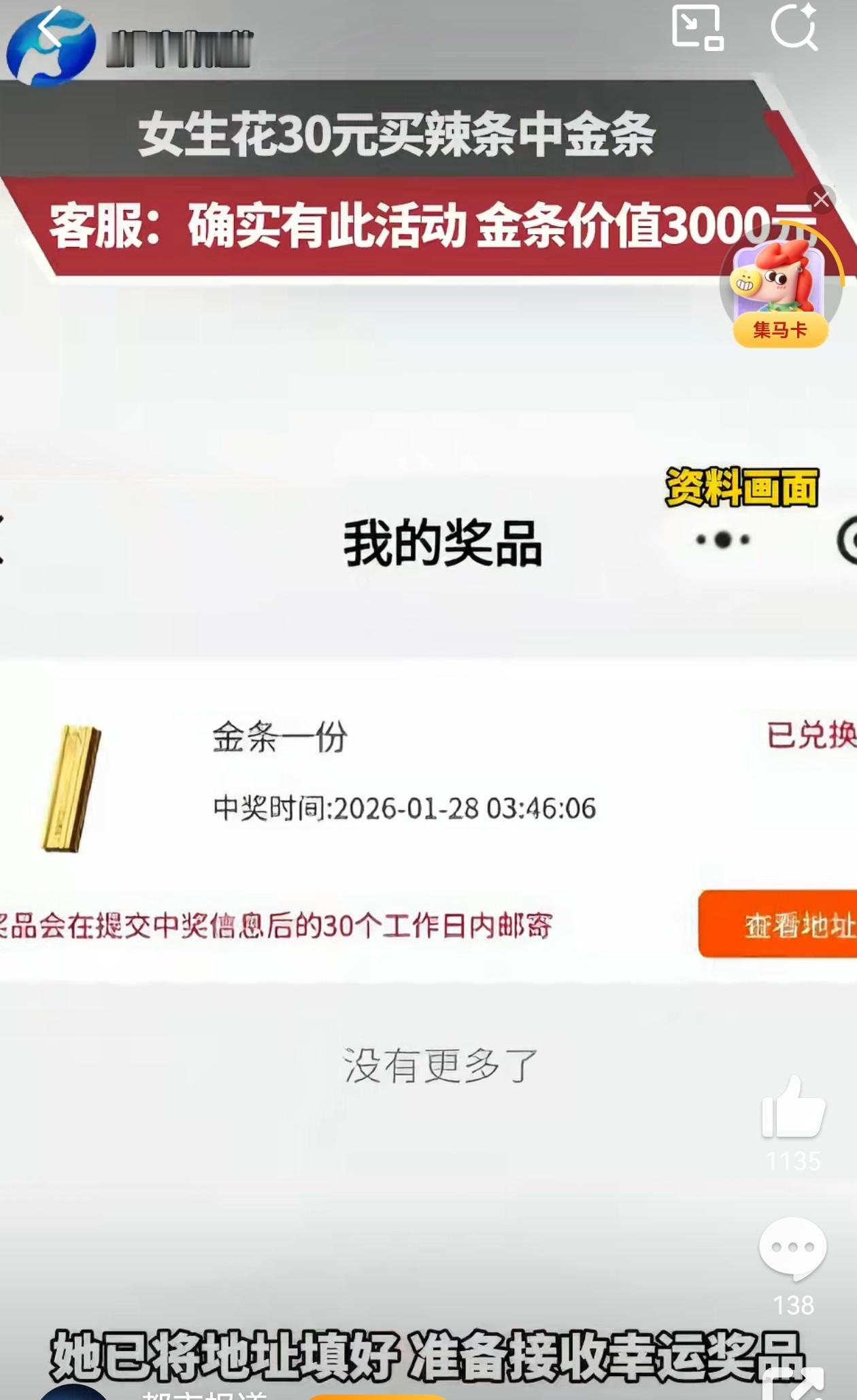 女子吃辣条吃出1根金条 专门找Deepseek问了一下,价值3000元的金条有多少克。嗯,好吧,最近金子是越来越贵了!不过,这运气,真是令人羡慕。吃个辣条中了“金条一份”!