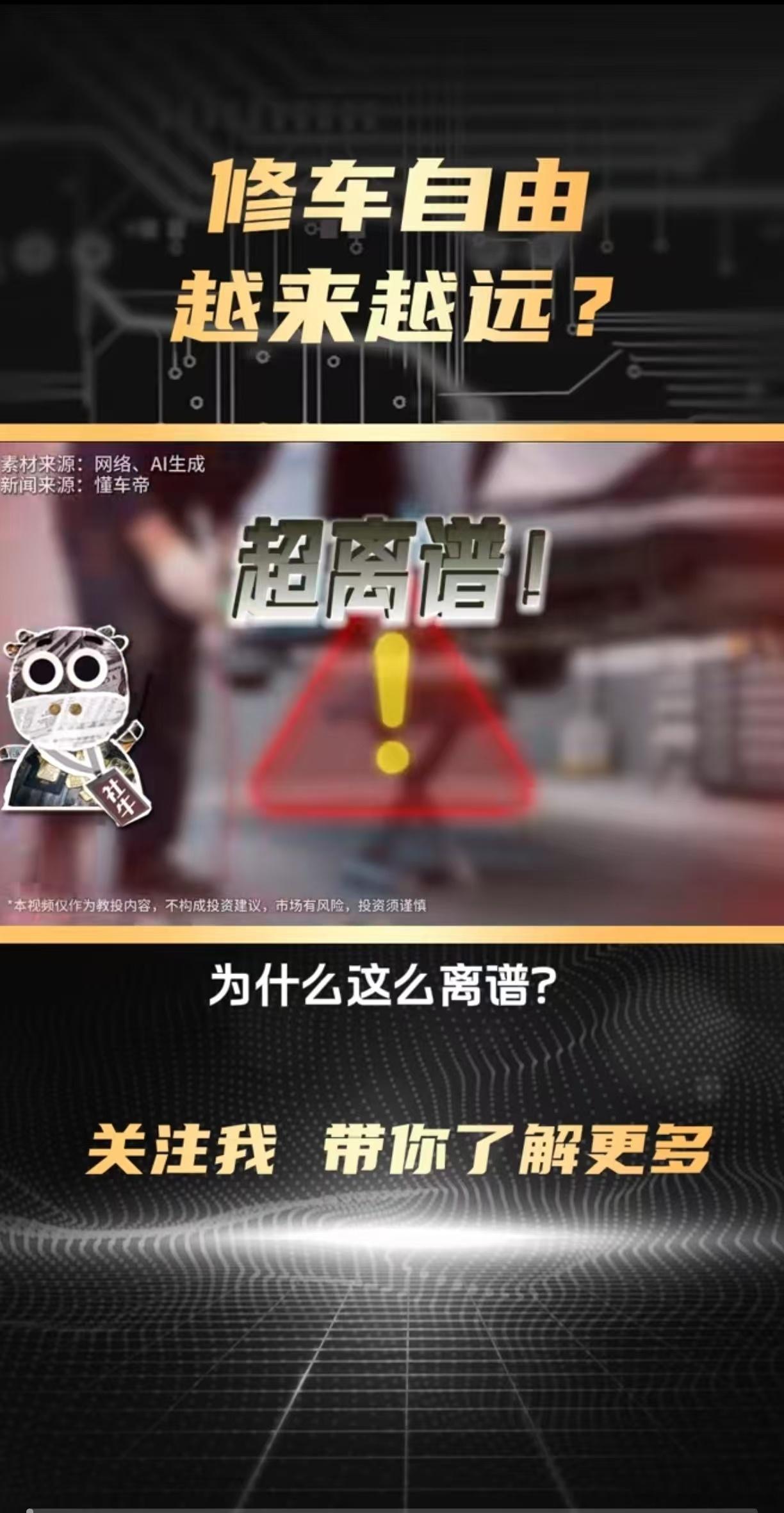 有人说买新能源车最应该注意续航跟安全,但这其实不是最重要的。不知道大家有没有发现一个现象?有些新能源车都卷到贴成本价卖了,难不成车企真的在做慈善?7万才够本的车敢卖6万,他们到底咋想的?我一朋友跟我说,他算是栽过跟头才懂了,家里电车出了个小毛病,外面修理厂一眼就看出问题,却直摆手说修不了。明明200块能搞定的事,最后只能跑4S店花2000块!你猜为啥?修理厂老板说,电车的电路板、控制器都带密码,还得要厂家专属软件刷写,外面根本拿不到权限,越修故障码越多。更气人的是,售后根本不叫维修,电阻坏了换整个模块,小问题直接整套换新,纯纯“以换代修” ! 原来车企的算盘在这!前端降价抢市场,后端靠售后垄断“回血”。买车时省的钱,修车时翻倍还回去,而且价格他们说了算,你连议价的余地都没有。这哪是买车,分明是给自己套了个长期“隐形车贷”!大家有啥看法可以聊聊。文 张国成