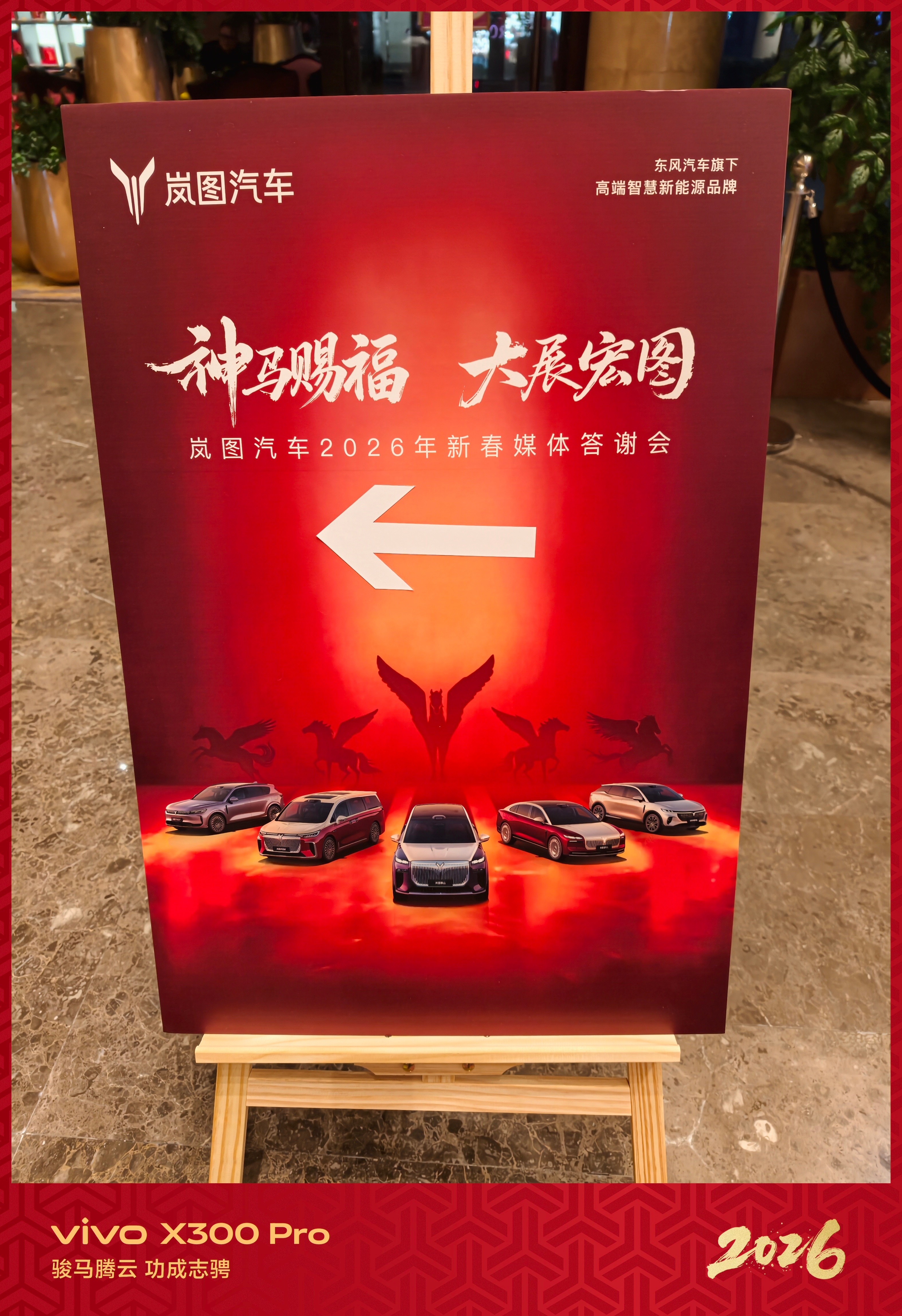 岚图汽车媒体答谢宴,开餐之前直接把岚图2026年的重磅产品直接亮明牌了,三王一炸。1、岚图泰山Ultra,华为四激光雷达。2、岚图泰山X8,一台5米2的大五座SUV,打造最大空间的大五座SUV,让孩子在车内也可以嬉戏。3、岚图FE(未命名),颜值之作,超帅的SUV,也是华为四激光雷达。L3级别的辅助驾驶配置。法拉利配上华为智驾,号称法拉岚。4、岚图珠峰,科技王炸,50万级别的MPV,支持L3自动驾驶,支持超级魔毯,不是岚图梦想家升级版,是新的产品线。更高端,更豪华。神马赐福,大展宏图!2026看岚图!