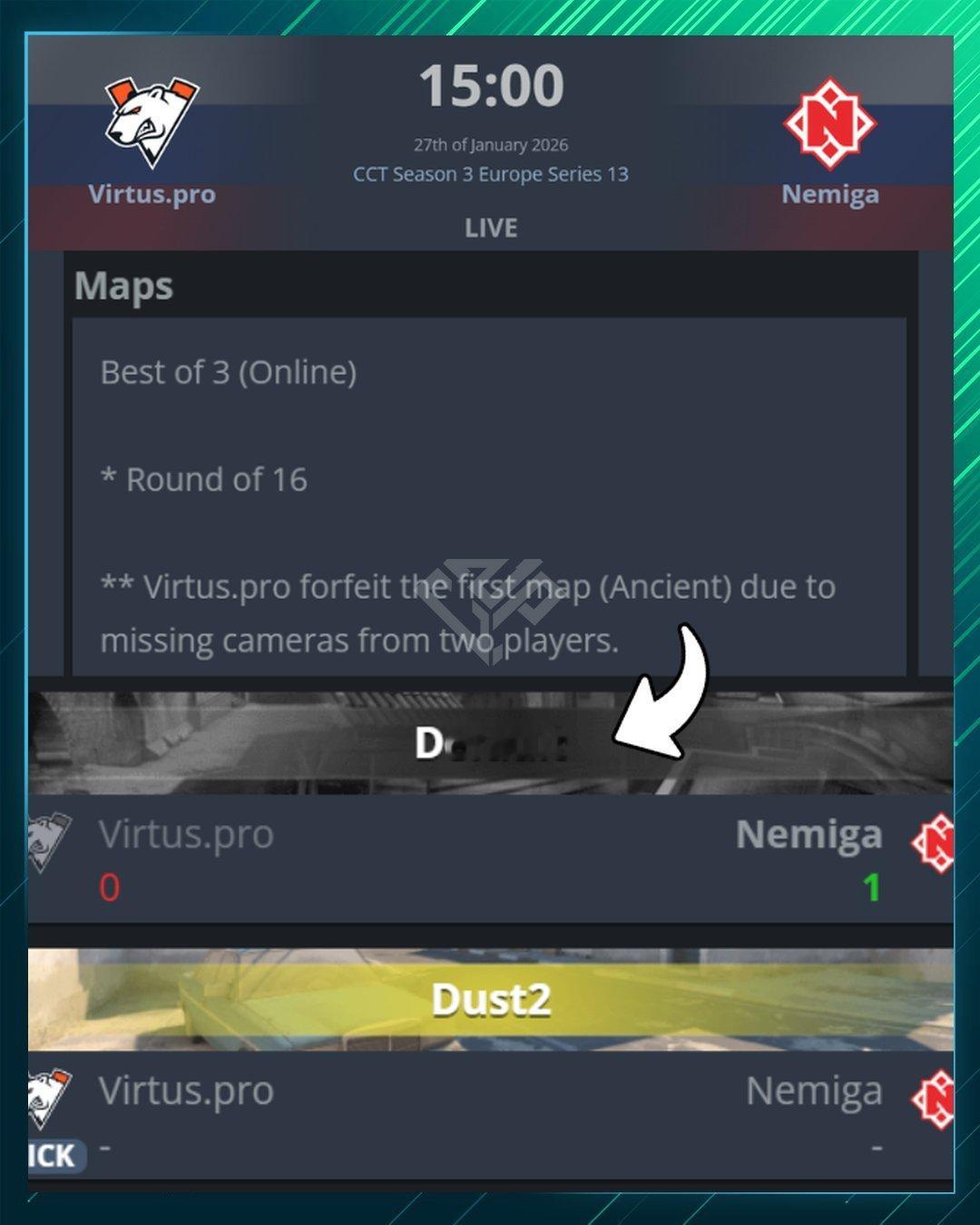 闹麻了!在昨日VP对战Nemiga的比赛中,VP因无法接入摄像头(系主办方网站网络故障)被直接判定图一告负。VP的队长Perfecto则对此评论道:“这就像马戏团大棚一样荒唐。”虽然VP随后想追分,但心态显然被搞崩了,最终 0-2 告负。而对手Nemiga也是懂整活的,赛后直接给摄像头颁了个MVPCS2 CSGO