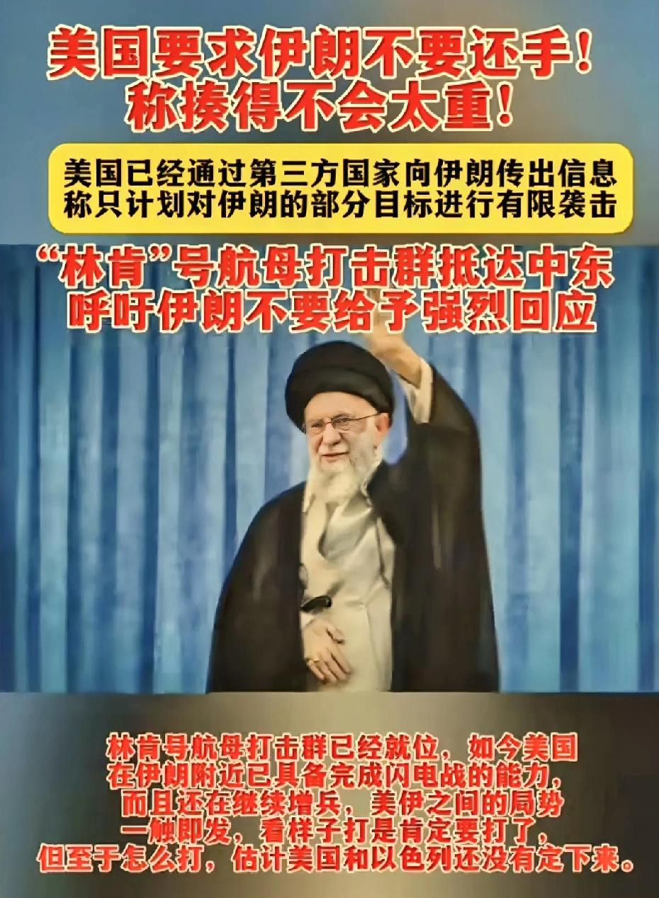 美国说:“阿朗啊!你不要反抗,放心,我不会打得太重的。” 伊朗说:“阿美呀!你没啥信用可言,我要是真听你的了,万一你下死手怎么办?” 美国说:“阿朗啊!我跟小以还没商量好呢!怎么可能对你下死手?放心吧你!咱们就一起演演戏,让我下个台。”