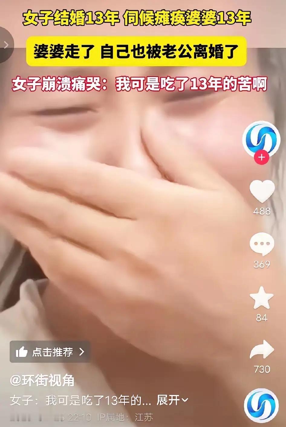 “卸磨杀驴”山东济南,一女子伺候瘫痪婆婆13年,喂饭擦身、端屎端尿,可刚给婆婆送终,丈夫就立刻提出了离婚,女子崩溃痛哭:“我可是吃了13年的苦啊!” 女子嫁过来第三年,婆婆突发脑梗落下了瘫痪的病根,彼时她才三十出头,二话不说辞掉了商场的工作,一头扎进了照顾婆婆的日子里。脑梗引发的瘫痪常伴随肌张力异常和大小便失禁,她要面对的不只是简单的喂饭擦身,还有日复一日的繁琐与煎熬。每天清晨五点就得起身,先烧好温水给婆婆擦拭身体,瘫痪病人关节僵硬,每翻动一次都要使出全身力气,往往刚擦完一侧,后背就被汗水浸透。婆婆吞咽功能受影响,她得把饭菜打成糊状,用勺子一点点送进嘴里,一顿饭耗时近两个小时,遇到呛咳就得立刻停手,清理污物后重新准备。夜里更不敢睡沉,每隔两小时就要起身更换尿垫,防止长期卧床引发压疮,13年间,她从未睡过一个完整的觉。 丈夫常年在外工作,家里的照料重担全压在她身上。婆婆病情偶尔反复,出现肌肉震颤或情绪暴躁时,她得一边安抚一边调整护理方式,有次婆婆突发癫痫,她独自推着轮椅狂奔三公里送医,手心磨出了血泡也不敢松手。为了照顾婆婆,她断绝了和朋友的往来,放弃了所有社交,商场同事偶尔遇见,都惊讶于她沧桑的模样——三十出头的年纪,眼角爬满细纹,双手因为长期接触消毒水变得粗糙开裂。她不是没想过抱怨,可每次看到婆婆浑浊眼神里的依赖,想到丈夫电话里那句“辛苦你了”,就又咬牙坚持了下来。她以为熬过这十几年,等婆婆百年之后,就能和丈夫重拾二人世界,弥补这些年的亏欠。 婆婆的葬礼刚结束,灵堂的白菊还没枯萎,丈夫就坐在沙发上说出了离婚的话。没有铺垫,没有犹豫,语气平淡得像在说“今天吃什么”。她愣在原地,手里还攥着收拾遗物的抹布,积攒了13年的委屈瞬间爆发,痛哭着质问,可丈夫只淡淡回应“感情早就淡了”。这句话像一把尖刀,刺穿了她所有的付出与坚守。她才意识到,自己13年的牺牲,在丈夫眼里或许只是“理所当然”的义务,甚至成了他摆脱家庭束缚的负担。 这样的案例并非个例。根据《民法典》第1088条,夫妻一方因照料老年人负担较多义务的,离婚时有权请求补偿,但司法实践中,这项权利的实现并不容易。扬州大学2024年的研究显示,241件相关案件中,家务劳动补偿的支持率仅为45%,即便获得支持,补偿金额也大多在1万至5万元之间,有案例中全职妈妈10年付出仅获赔2万元,折算下来每天不足6元。更让人无奈的是举证难题,就像湖北刘某珍的案例,她独自照顾子女和公婆二十余年,离婚时因无法提供书面证据,最初的补偿请求直接被驳回,直到检察机关介入调查核实才获赔8万元。 济南这位女子的遭遇,暴露了婚姻中家务劳动价值被低估的现实。13年的护理工作,若是聘请专业护工,按市场行情每年费用至少在6万元以上,而她的无偿付出,不仅牺牲了收入来源,还透支了身体健康。丈夫在婚姻存续期间享受着她的照料带来的便利,却在义务完成后立刻“切割”,这种行为不仅违背道德良知,也忽视了法律对家务劳动价值的认可。 婚姻的本质是互相扶持,而非单方面的牺牲与索取。当一位女性放弃事业,十几年如一日照料瘫痪亲属,她付出的不仅是时间和体力,更是人生的可能性。法律层面的补偿或许能缓解经济压力,但更重要的是,社会需要正视家务劳动的价值,婚姻中的双方更应懂得感恩与担当。否则,再多的法律条款,也难以填补人心的冷漠与背叛。 各位读者你们怎么看?欢迎在评论区讨论。