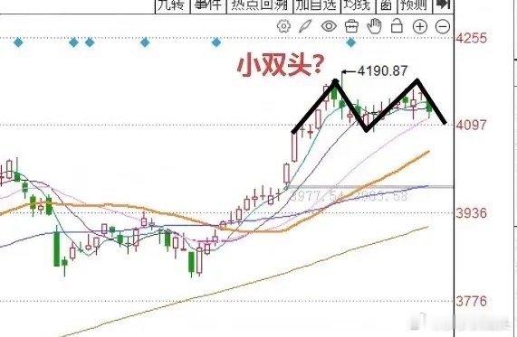 今天A股四落四起,明天A股怎么走?到底是涨是跌?兄弟们听莎莎讲三个理由:第一,推动本轮指数上涨的核心板块,比如说金属资源类板块,以及半导体板块,都已经在非常明显的短线高位。而且这两个板块都经过了非常明显的短线大幅拉升。我认为超短线要防止这两个热门板块,短线震荡回落,从而对大盘指数构成一定的压力。第二,上证指数最近几个交易日,重心缓慢上移,今天的最高点到达4170点附近,已经开始接近,我在上一周就和大家讲到的小双头的高点位置,4190点附近。而且在4170点附近是可以构成短线小双头的走势的大家请看图一。第三,代表小盘个股走势的中证2000指数,中证1000指数,包括中盘股中证500指数,昨天都留下了非常清晰的相对高位的长下影线大家请看图二。这种相对高位的长下影线,往往会在接下来几个交易日会被二次回踩确认。也就是说从这几个指数的角度来看,市场小盘股中盘股的调整,可能并没有结束。比如说,我们看到今天中证2000指数跌了0.73%。而中盘股,中证500指数虽然涨了0.61%,但是中证500指数的成交量放量的情况下,波动幅度却小于昨天。这说明中证500指数短线也出现了一定的滞涨的迹象。所以综合以上的分析,对于明天市场走势的判断,莎莎认为明天上证指数或者走出一颗小实体的阴线。那么明天A股到底怎么走?大家请看图三关于明天走势的手绘预测图:最后我想补充一点的是,我们可以看到最近几个交易日以来,市场每一天下跌的家数是比较多。昨天三市下跌的家数3400多家,今天有3600多家个股下跌。我们可以看到,市场实际的体感温度相对是比较低。而冰火两重天的是,局部热门板块,确实走出了热火朝天的行情。不过也正是因为这种局部板块的走牛行情,可能让大家忽视了整体市场下跌家数偏多的这种基本情况。所以往往在阶段小高点或者即将出现拐点的时候,很多朋友其实是“不知不觉的”。当然,虽然我看市场出现调整,但是即使调整,调整的深度其实是非常有限,市场的第1支撑点在4080点附近,第2支撑点稍微远一点,在4034点附近。兄弟姐妹们点赞,评论就是对我这个纯技术派的最大支持!