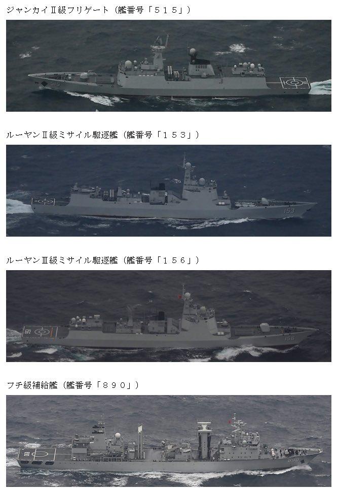 解放军舰艇编队前出西太训练! 1月27日夜间,中国海军舰艇编队通过宫古海峡进入西太平洋,编队由四艘舰艇组成,包括052DL型导弹驱逐舰 淄博舰(舷号156),052C型导弹驱逐舰 西安舰(舷号153),054A型导弹护卫舰 滨州舰(舷号515)和903A型综合补给舰 巢湖舰(舷号890)。 御用摄影师派出了一艘扫雷舰、一架P-1巡逻机和一架P-3C反潜巡逻机进行了跟踪监视。