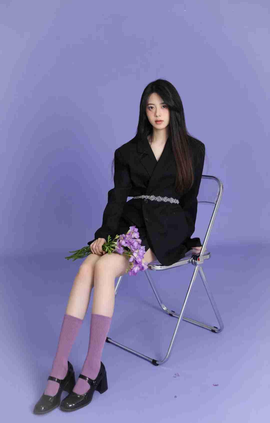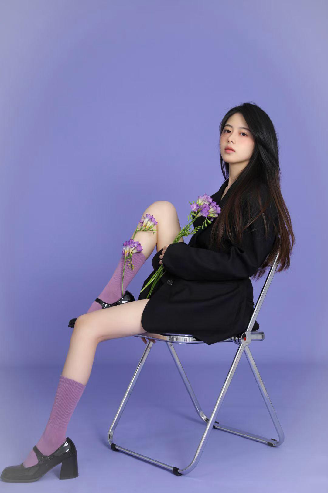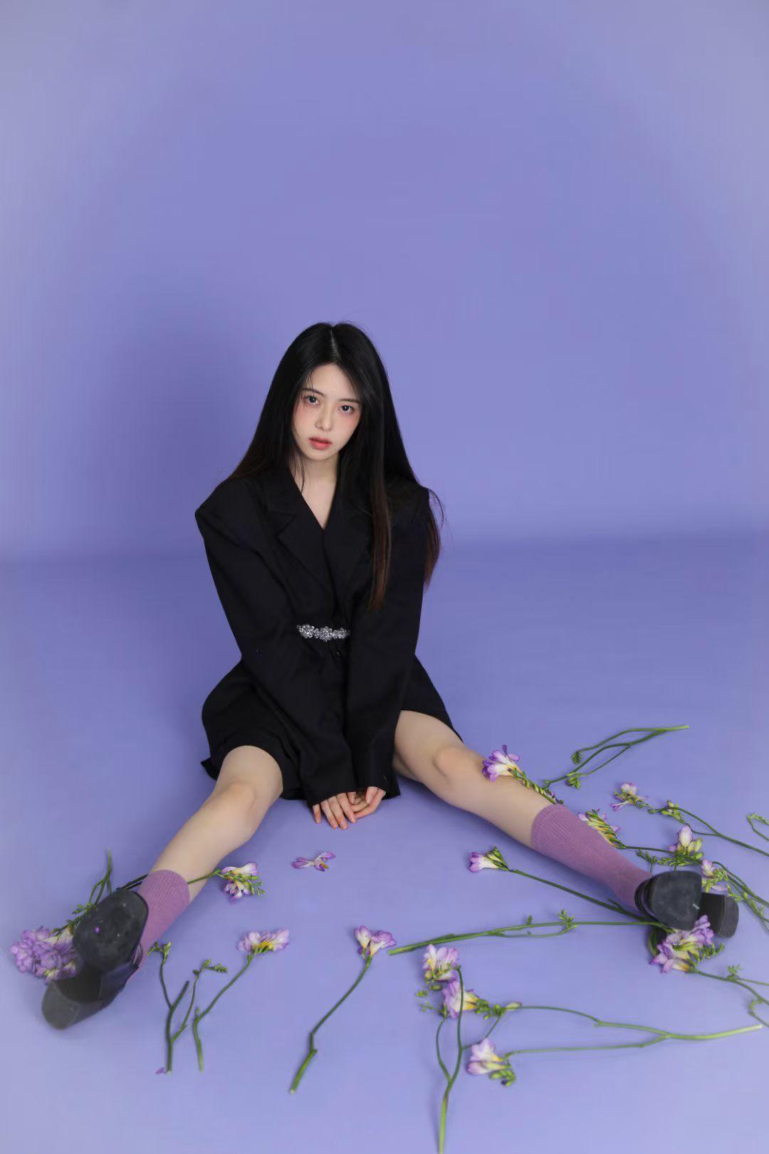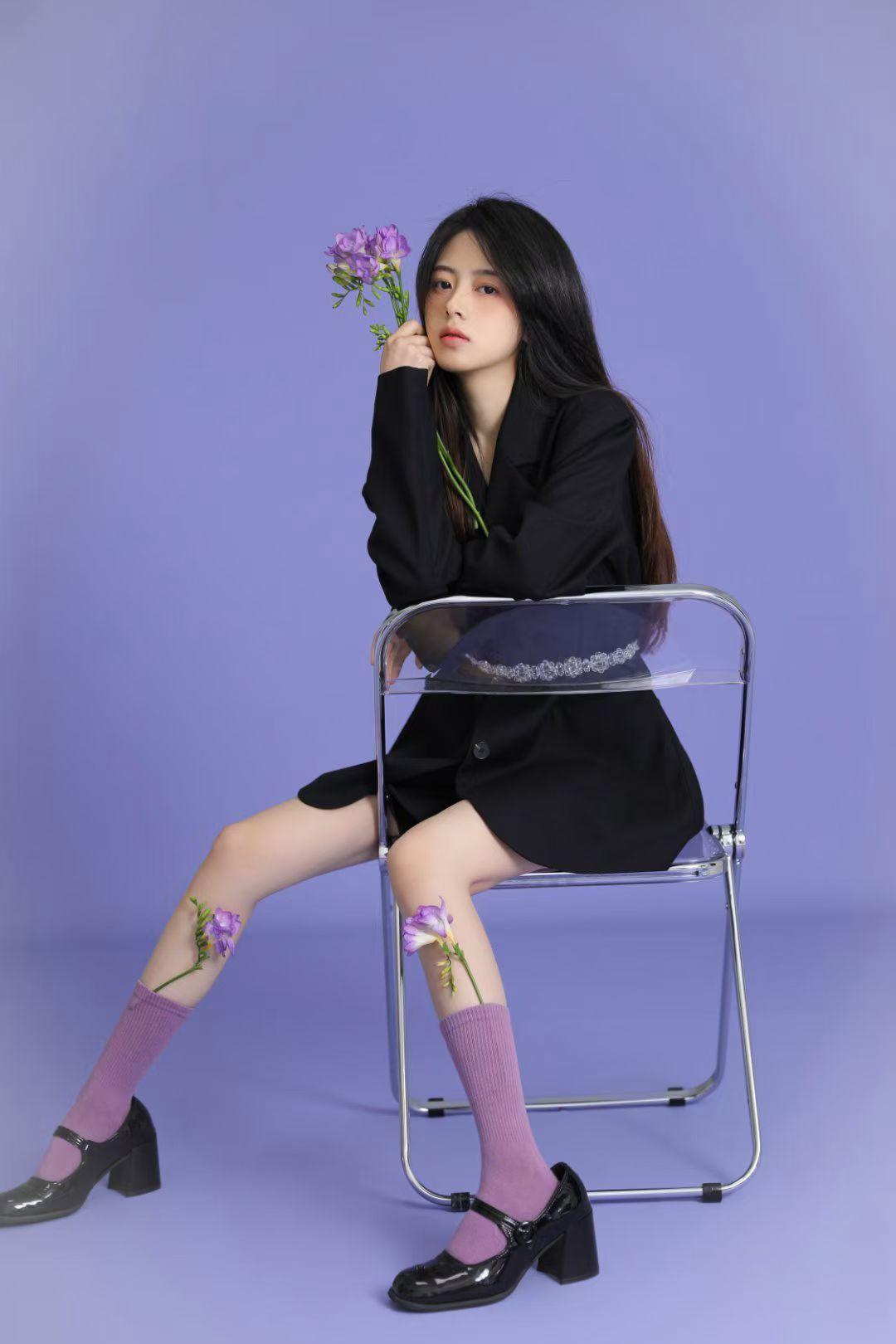 少女摄影|NO.0342期 清纯少女私房写真 黑色套装和紫色小腿袜也很搭呢