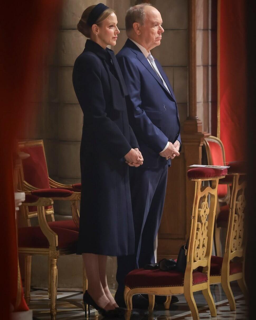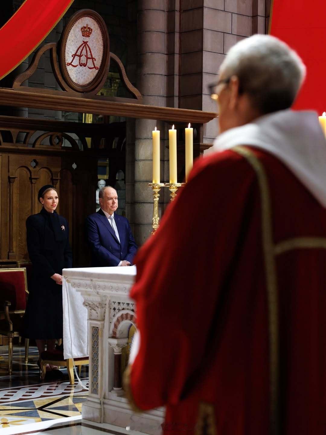 1.27 摩纳哥亲王阿尔贝二世和王妃夏琳参加忠贞节第二天的活动,教堂弥撒+巡游夏琳戴了枚蒂芙尼的胸针