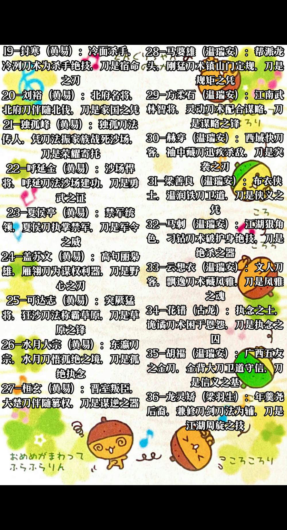 金古梁黄温刀客三十六位