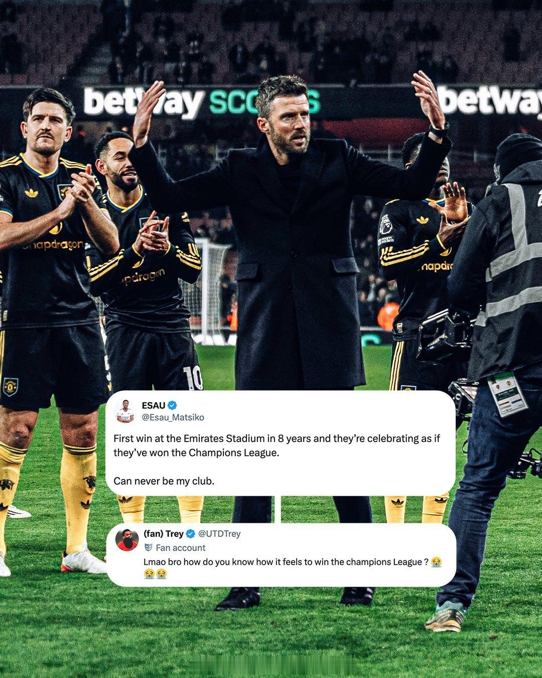 阿森纳球迷:8年来第一次在酋长球场赢球,他们庆祝的像拿了欧冠曼联球迷:笑死个人大兄弟,你怎么知道拿欧冠是什么感觉?烫知识:阿森纳拿过___个欧冠