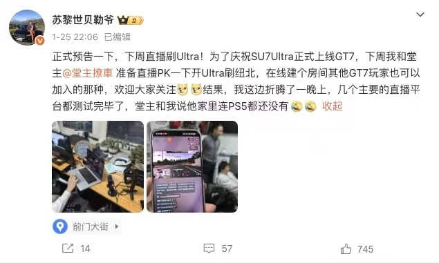 GT赛车28年来首个入驻的中国车企,小米SU7Ultra正式上线GT7。这次SU7 Ultra和保时捷911 GT3 R等狠角色同台,一点不怵,全球玩家终于能体验到它的操控、底盘和动力了。现实没开过,游戏里边还是可以好好体验一把的。游戏里的Ultra还原度还是蛮高,还能选装配件,大家可以猜猜售价会是多少?可否能和特斯拉Model S Performance一较高下?值得期待的是堂主、贝勒爷他们要直播约赛PK,明天可以围观一下。大家也可以下载了,先冲小米桥、纽北打卡,再和外国玩家来场排位赛。小米SU7Ultra上线GT7