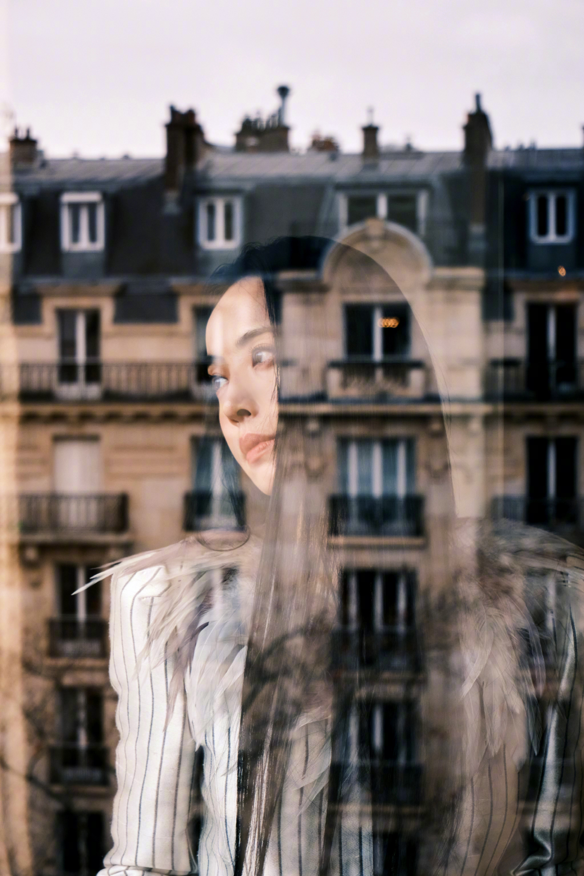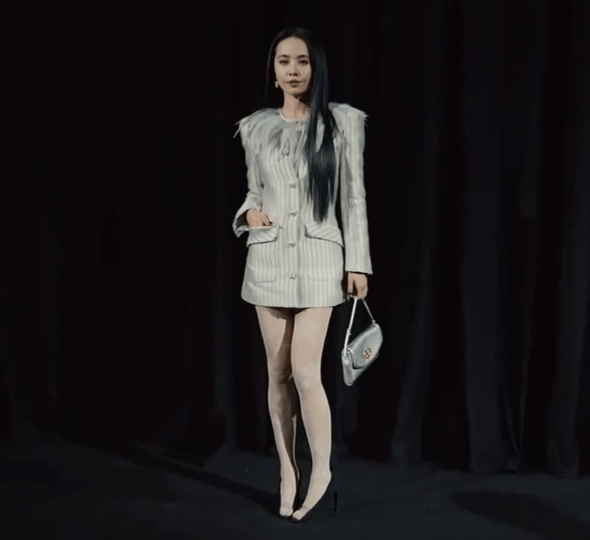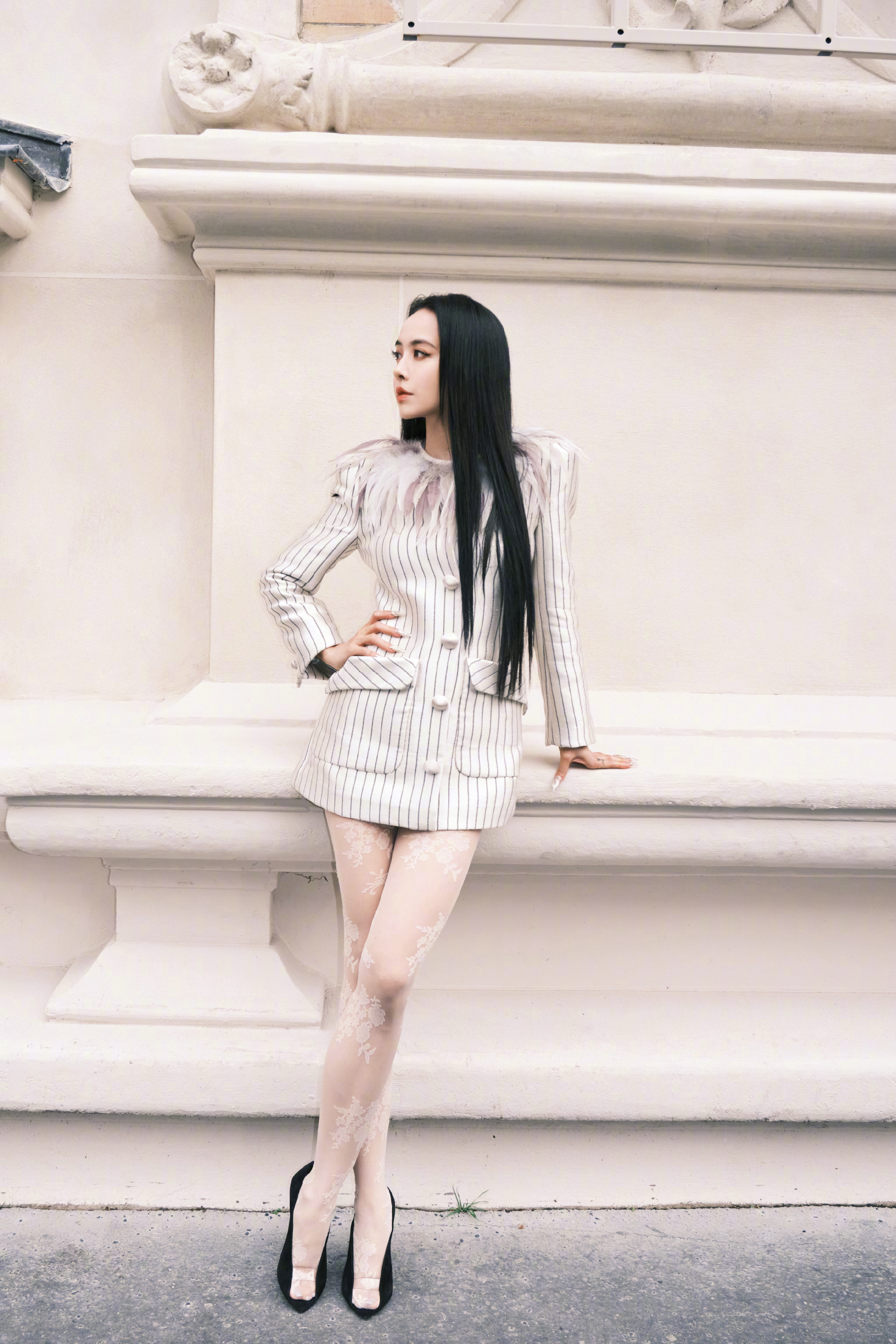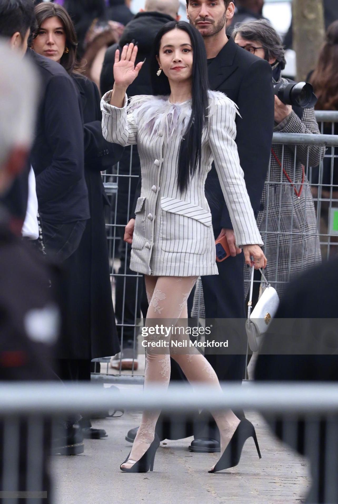 蔡依林 in VALENTINO 📷 今日华伦26高定大秀,身穿品牌26春夏系列登场,羽毛装饰的条纹连衣裙,天后的高定首秀~ 大秀直击巴黎高定时装周