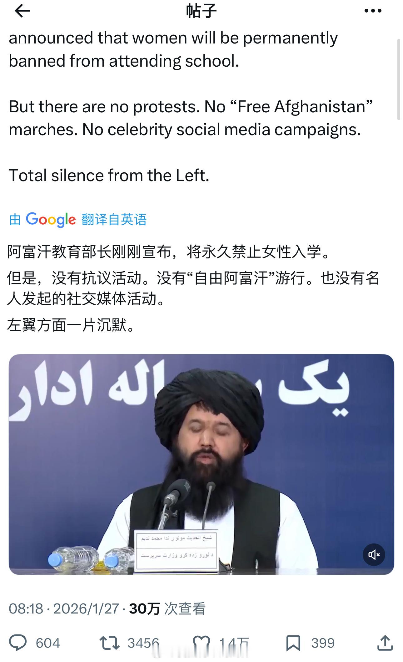 外媒报道,阿富汗不仅禁止女性入学,还将奴隶制合法化……阿富汗永久禁止女性上学海外