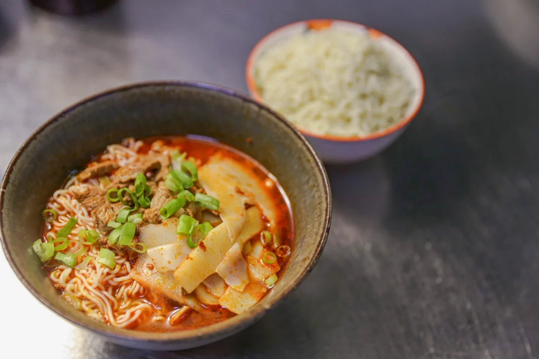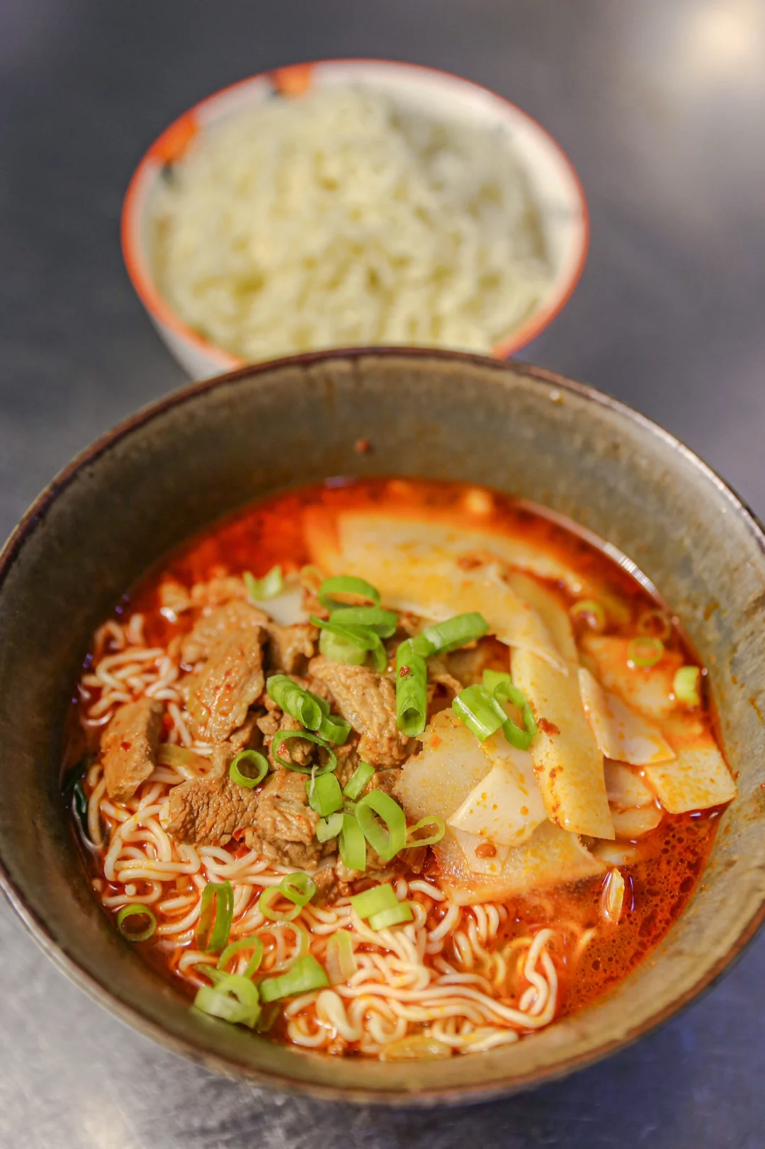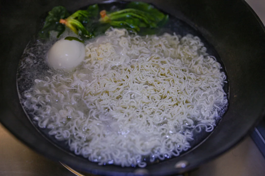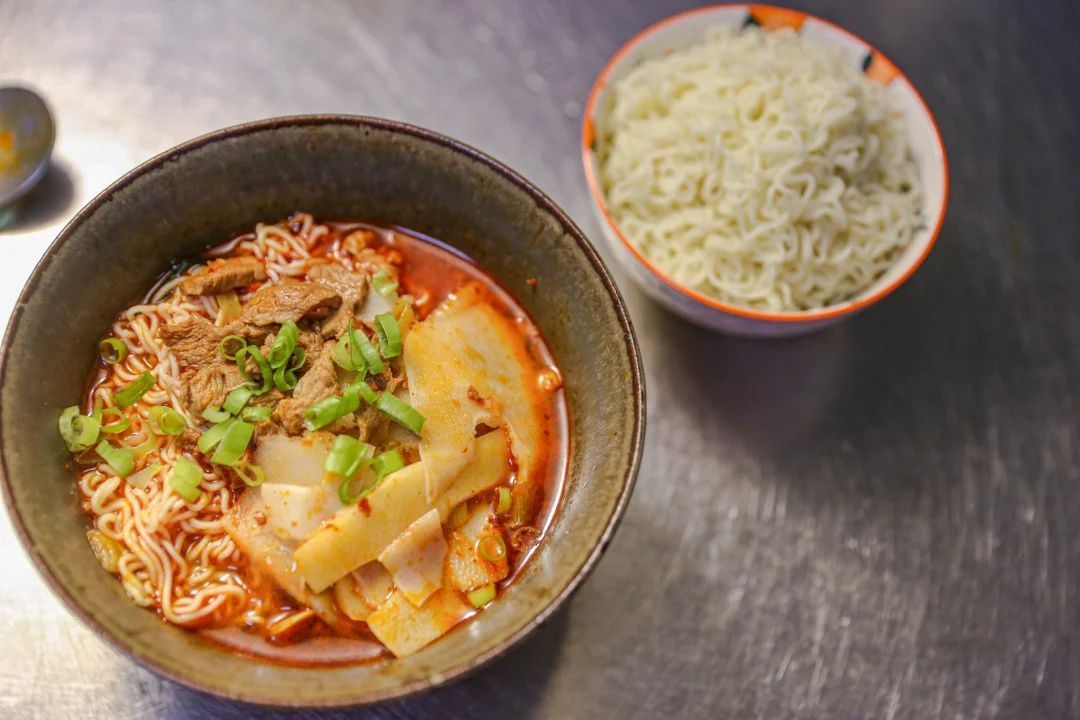 做好肉臊子,炝锅之后加入笋片,加入高汤即可。