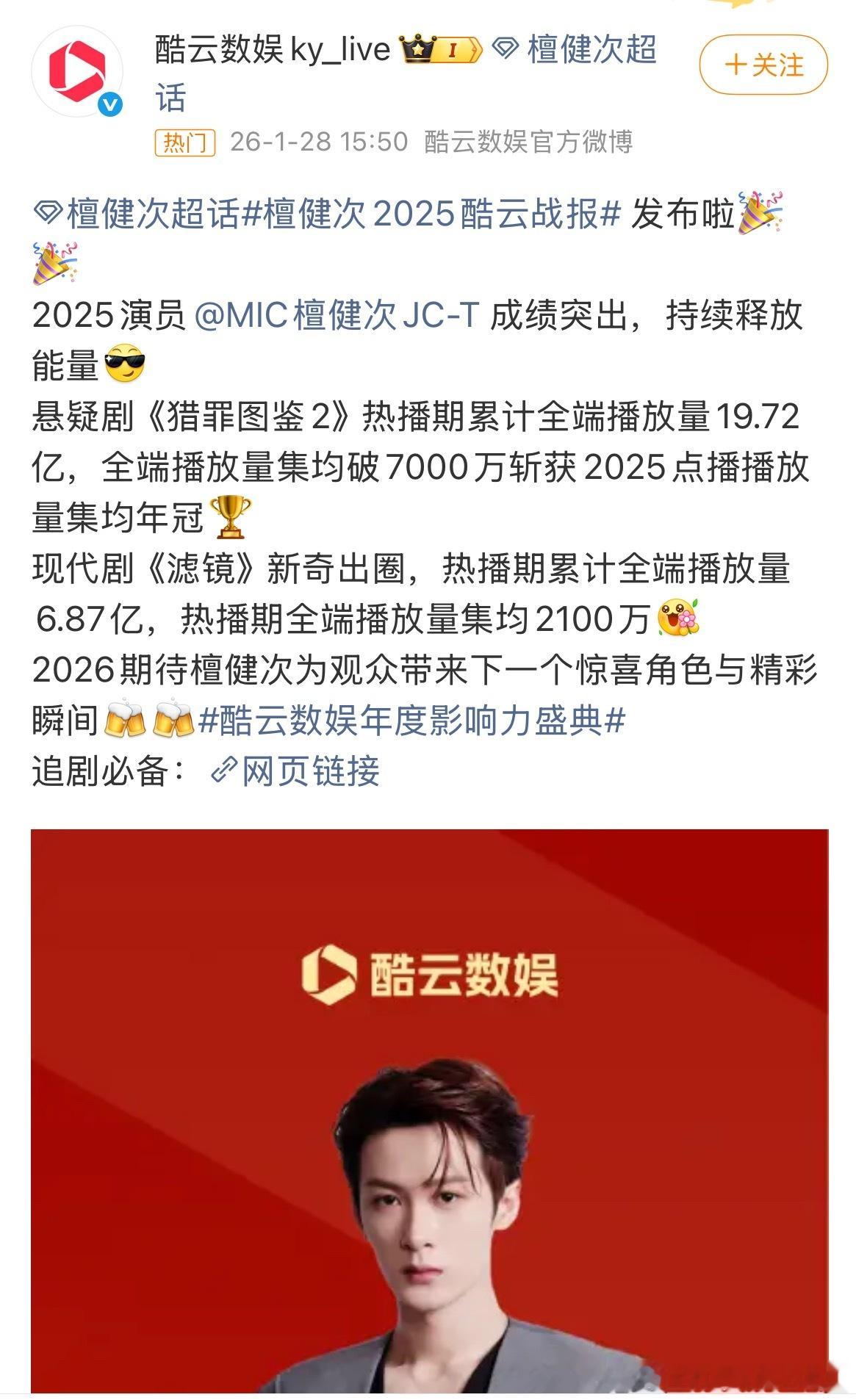 檀健次2025酷云战报,成绩突出,持续释放能量