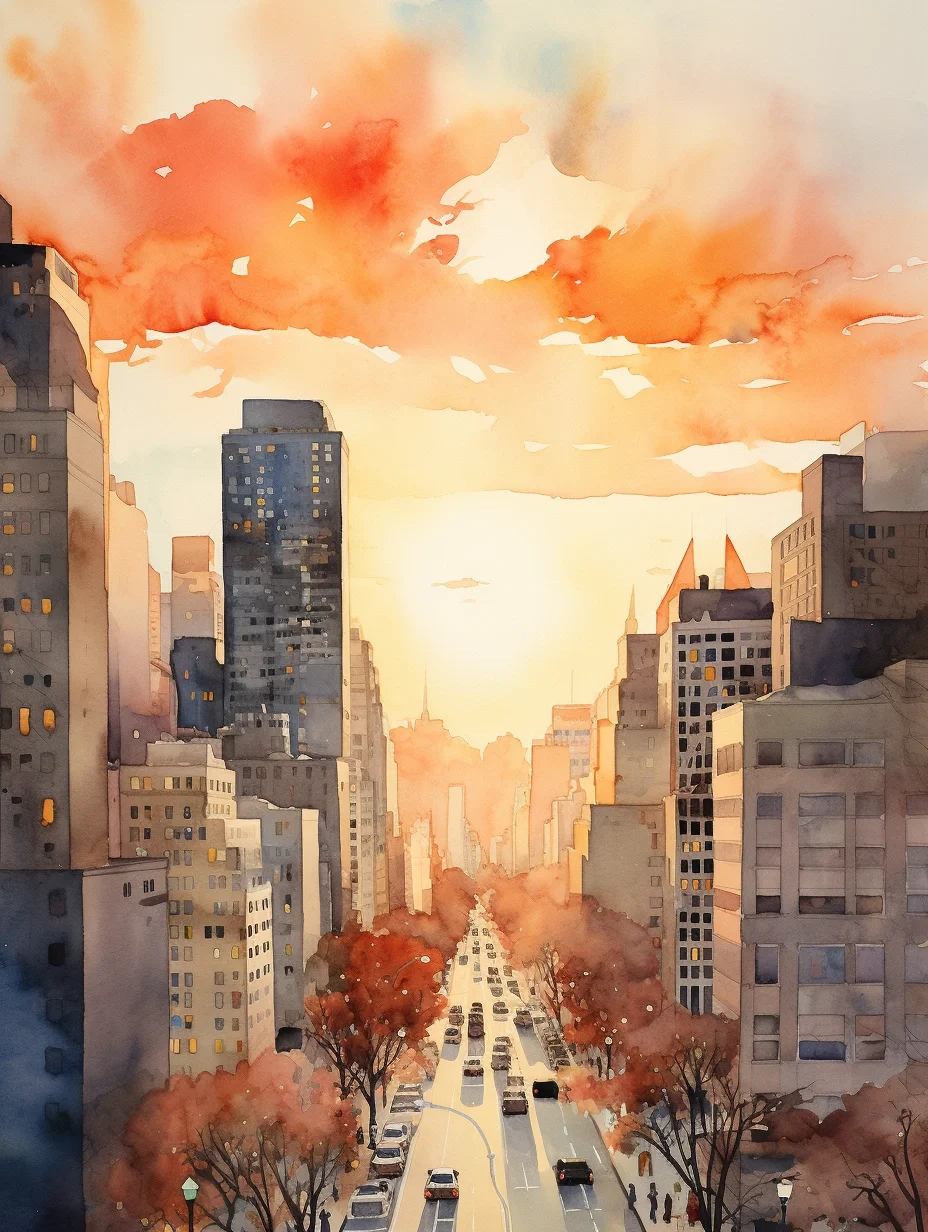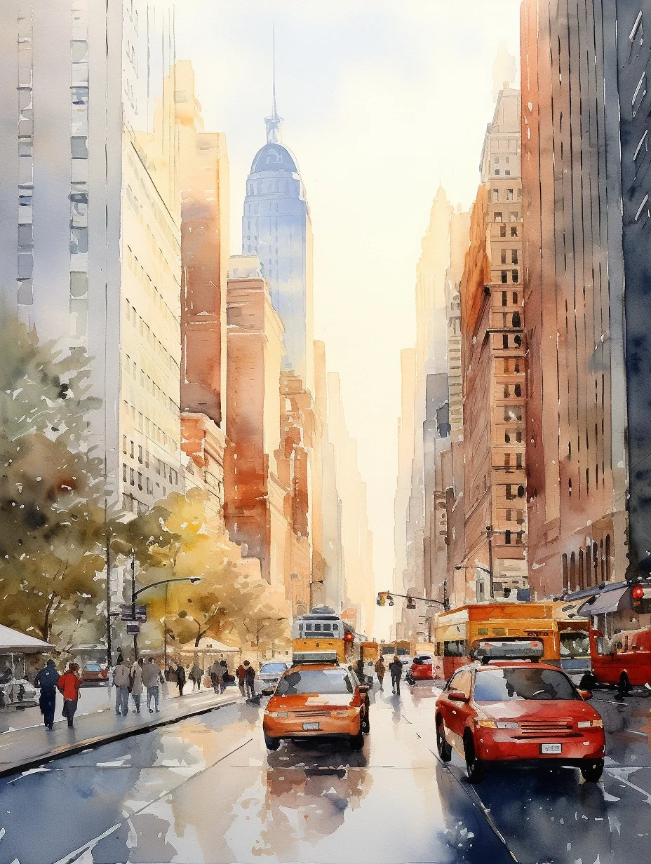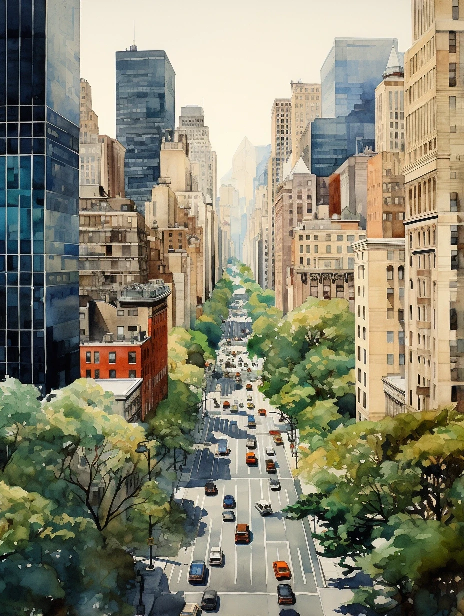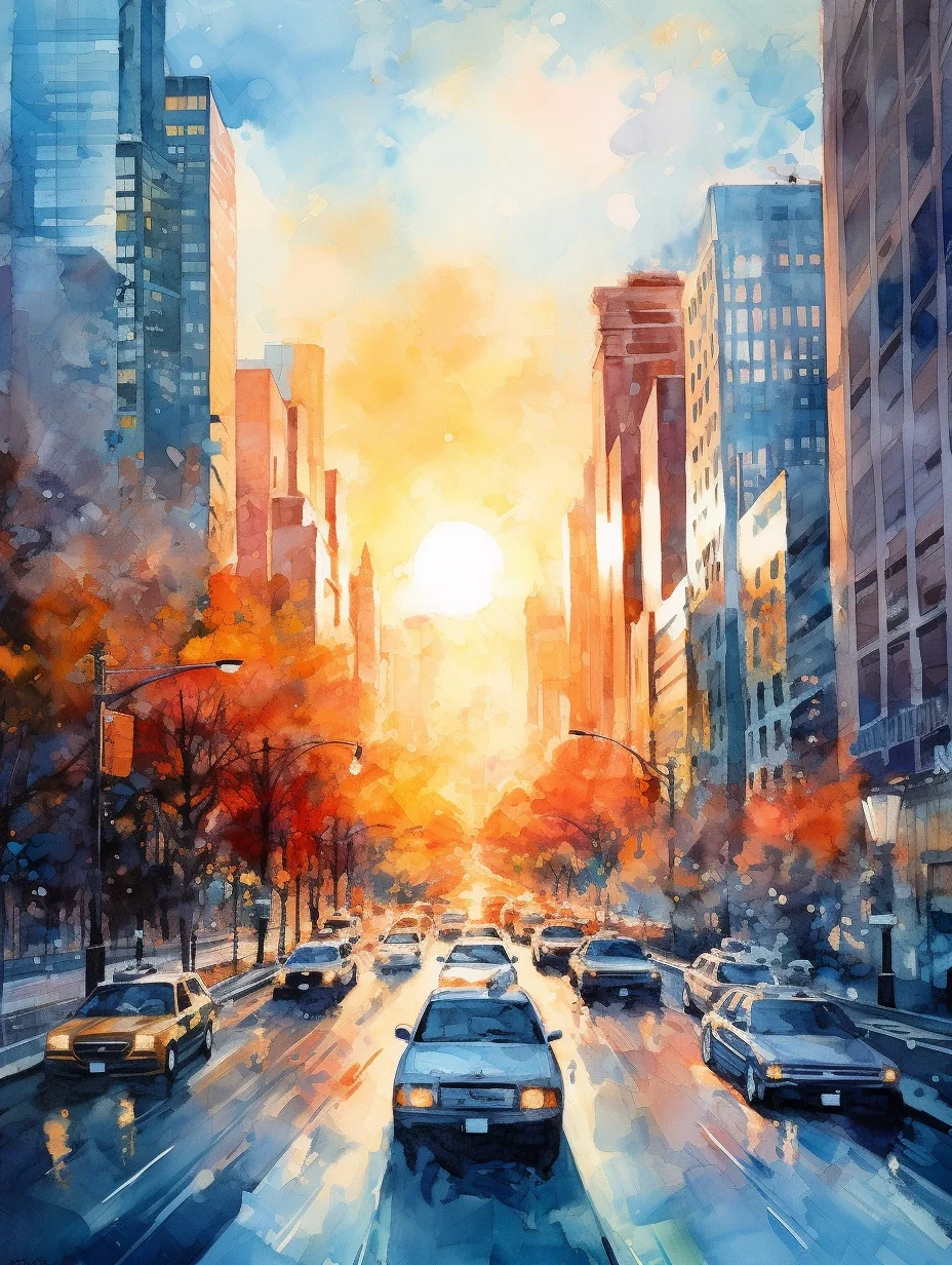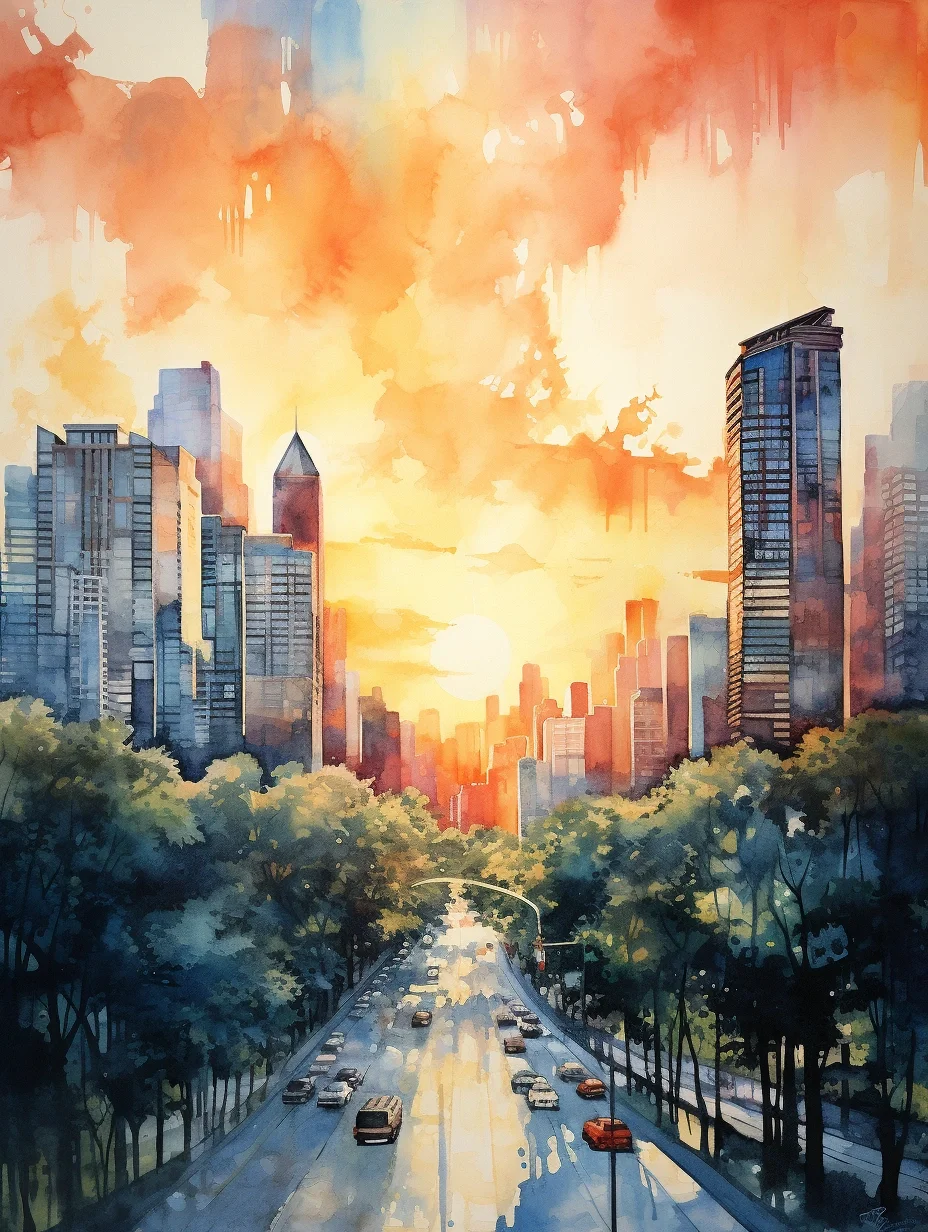 AI水彩:城市里的阳光大道