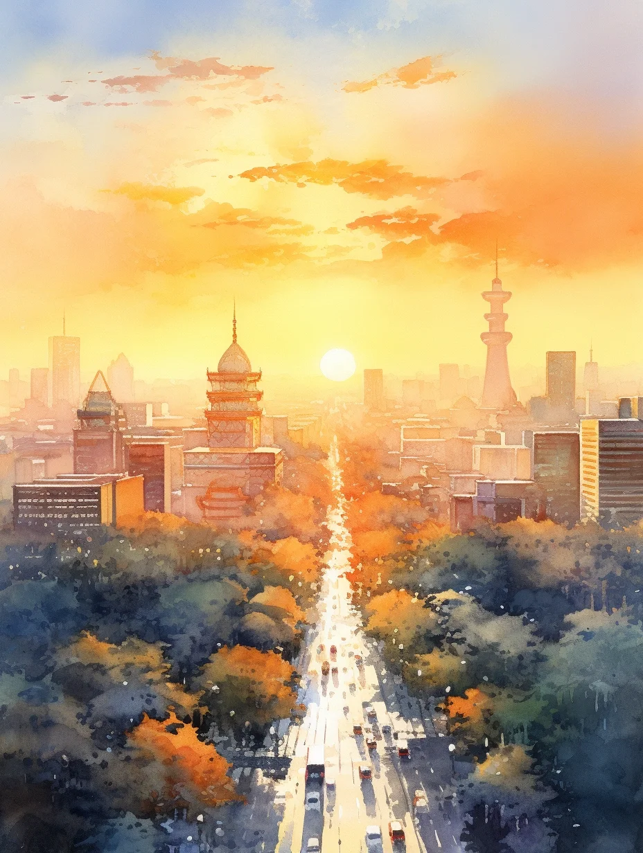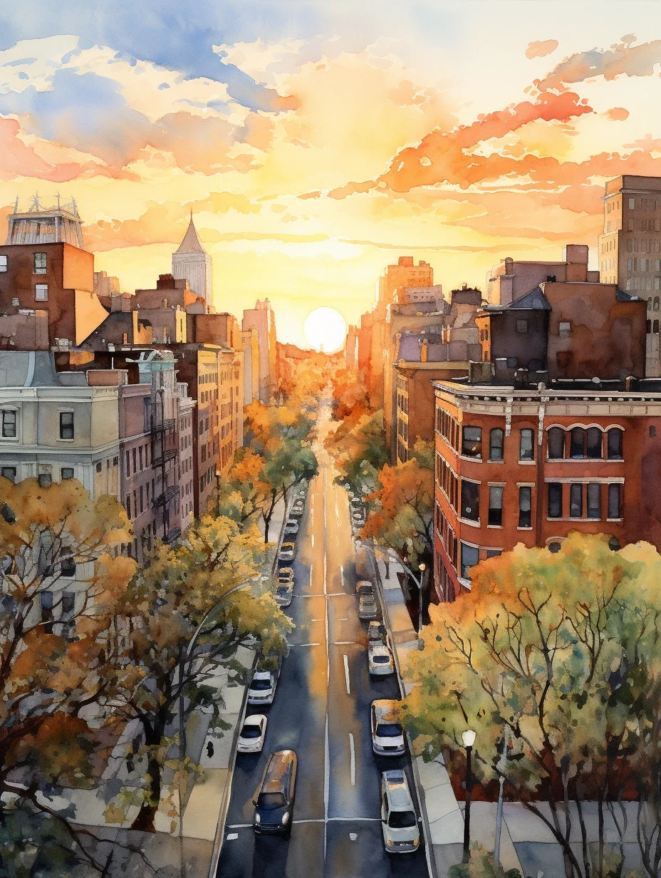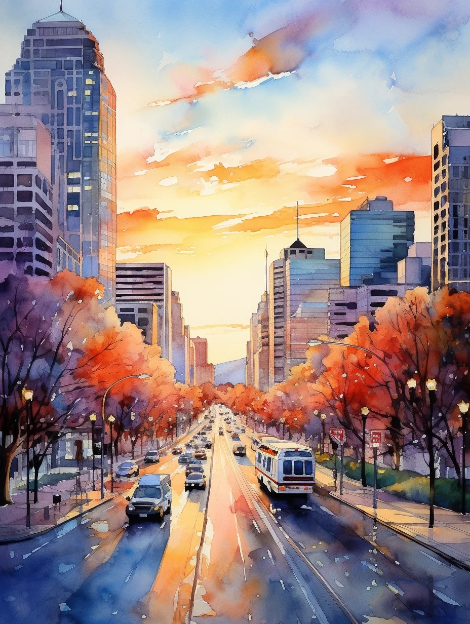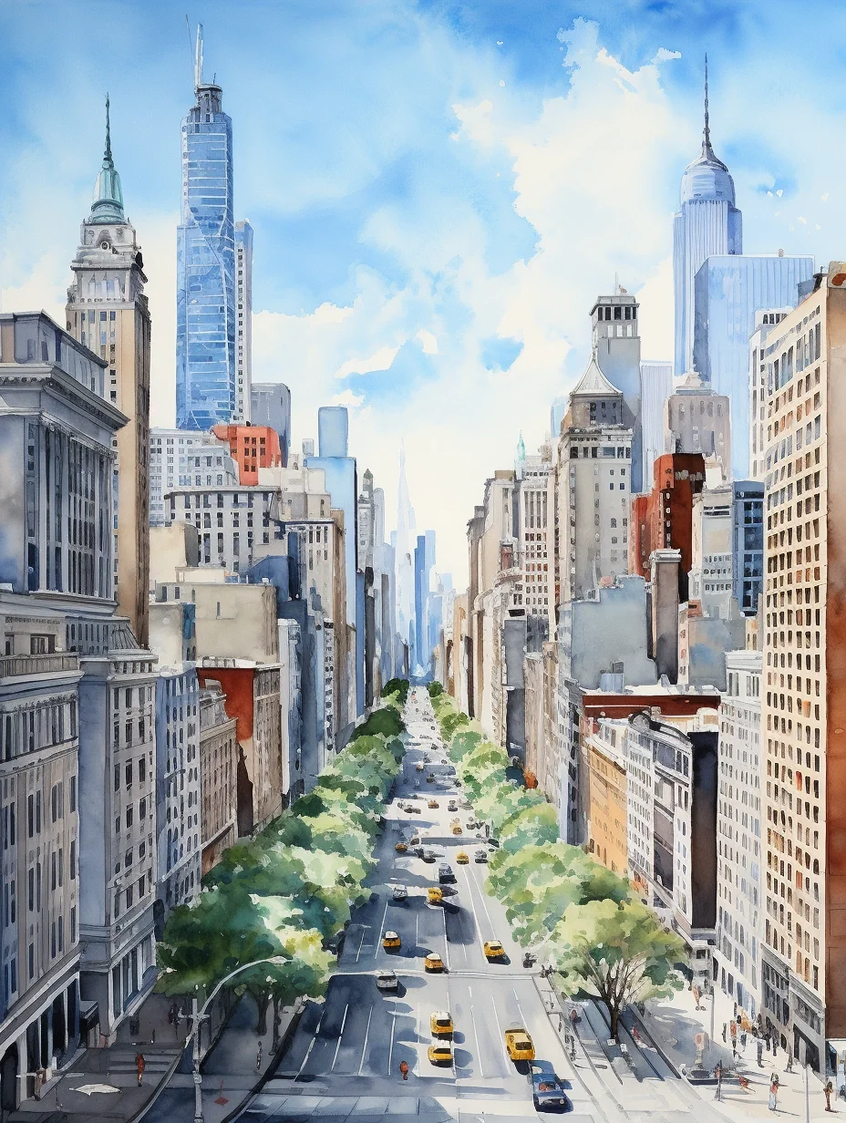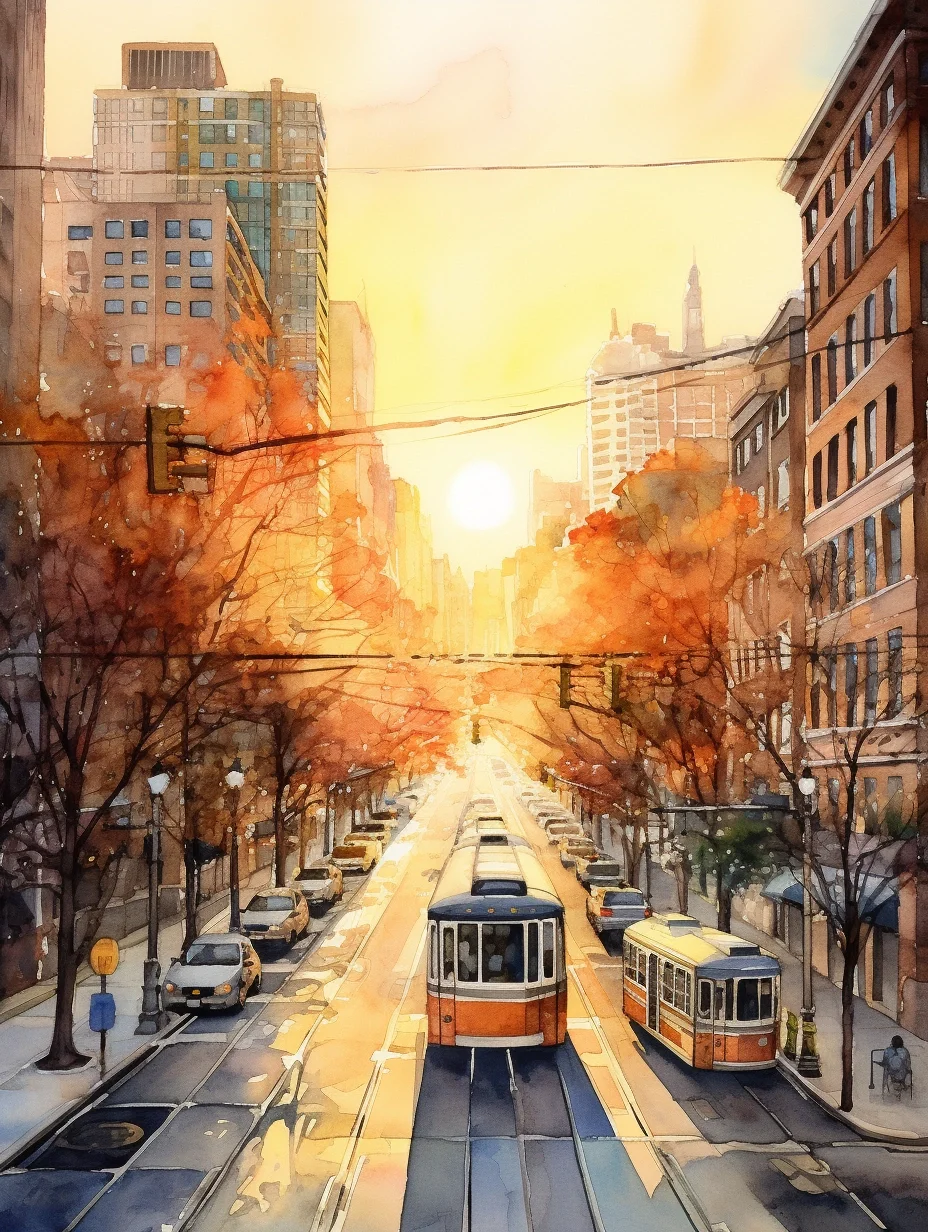 AI水彩:城市里的阳光大道