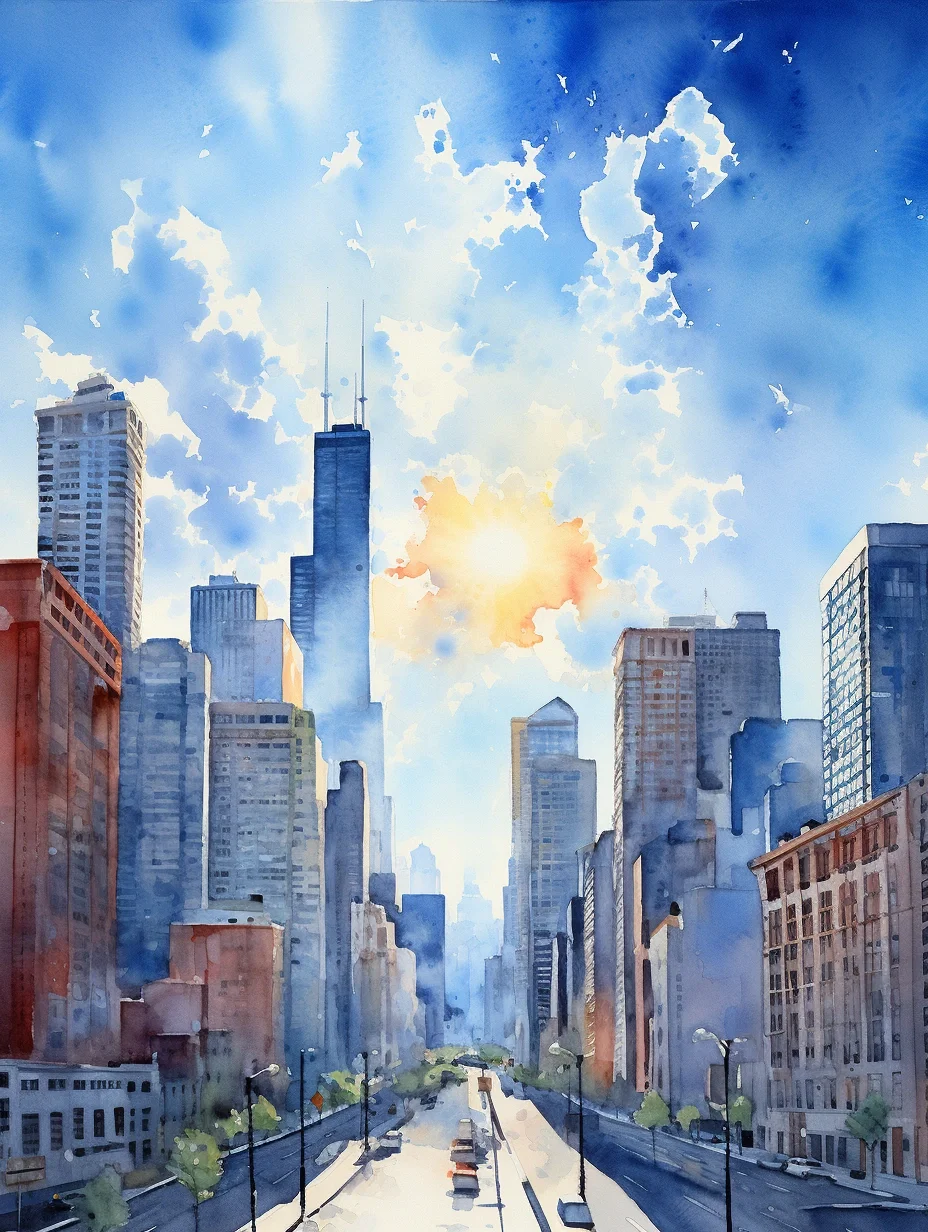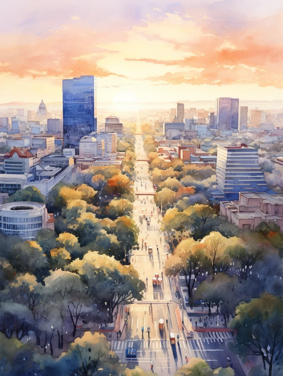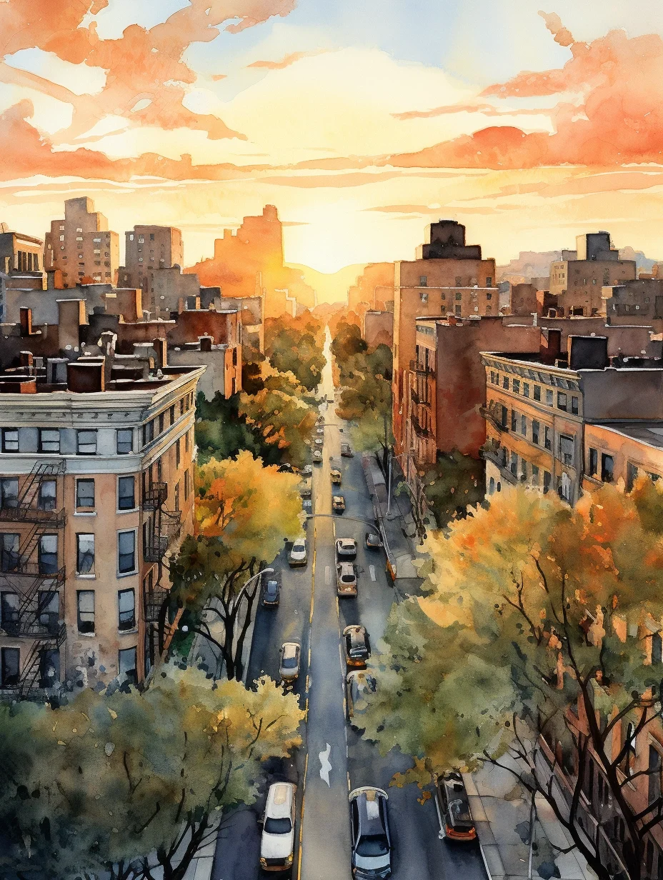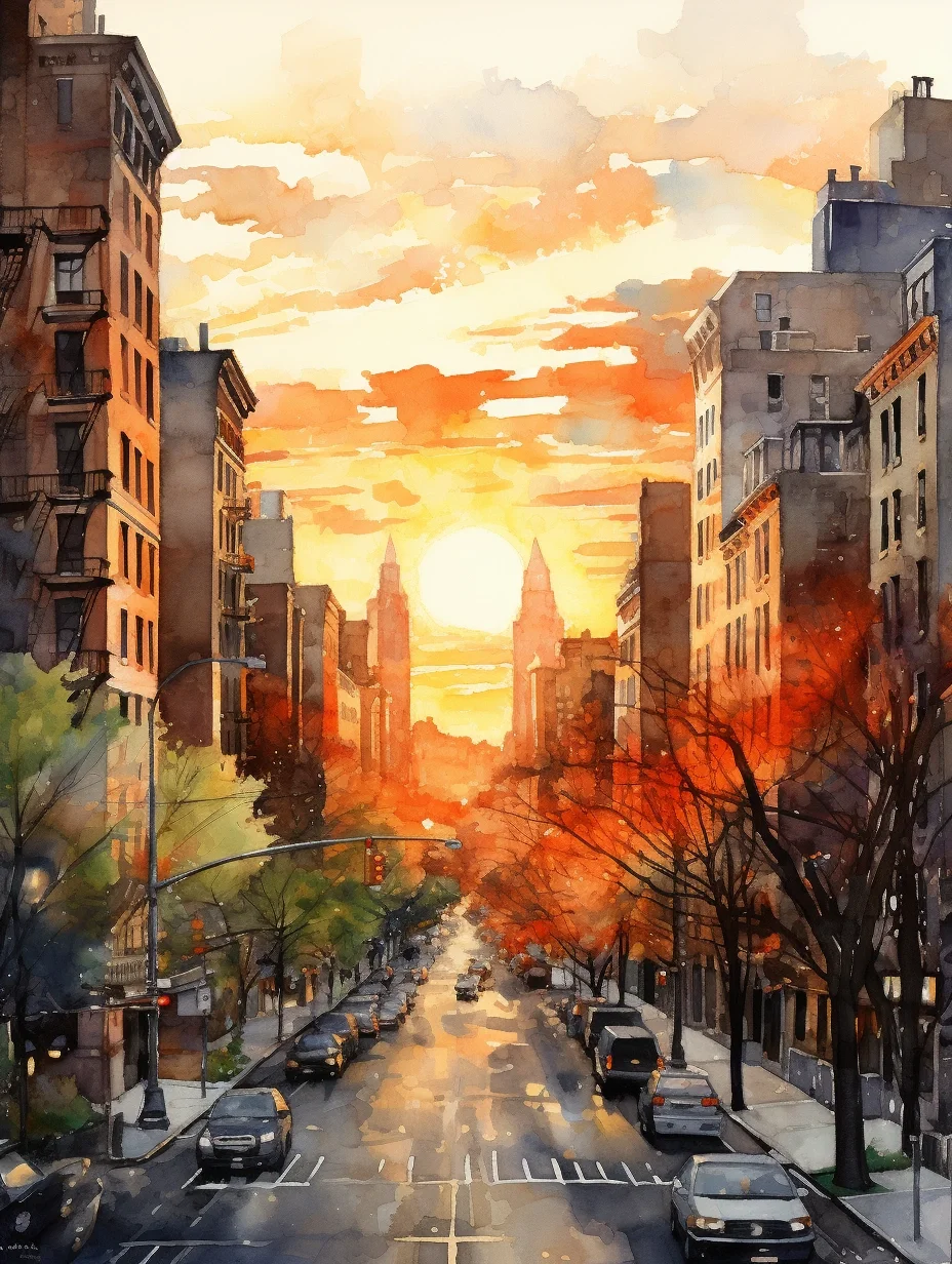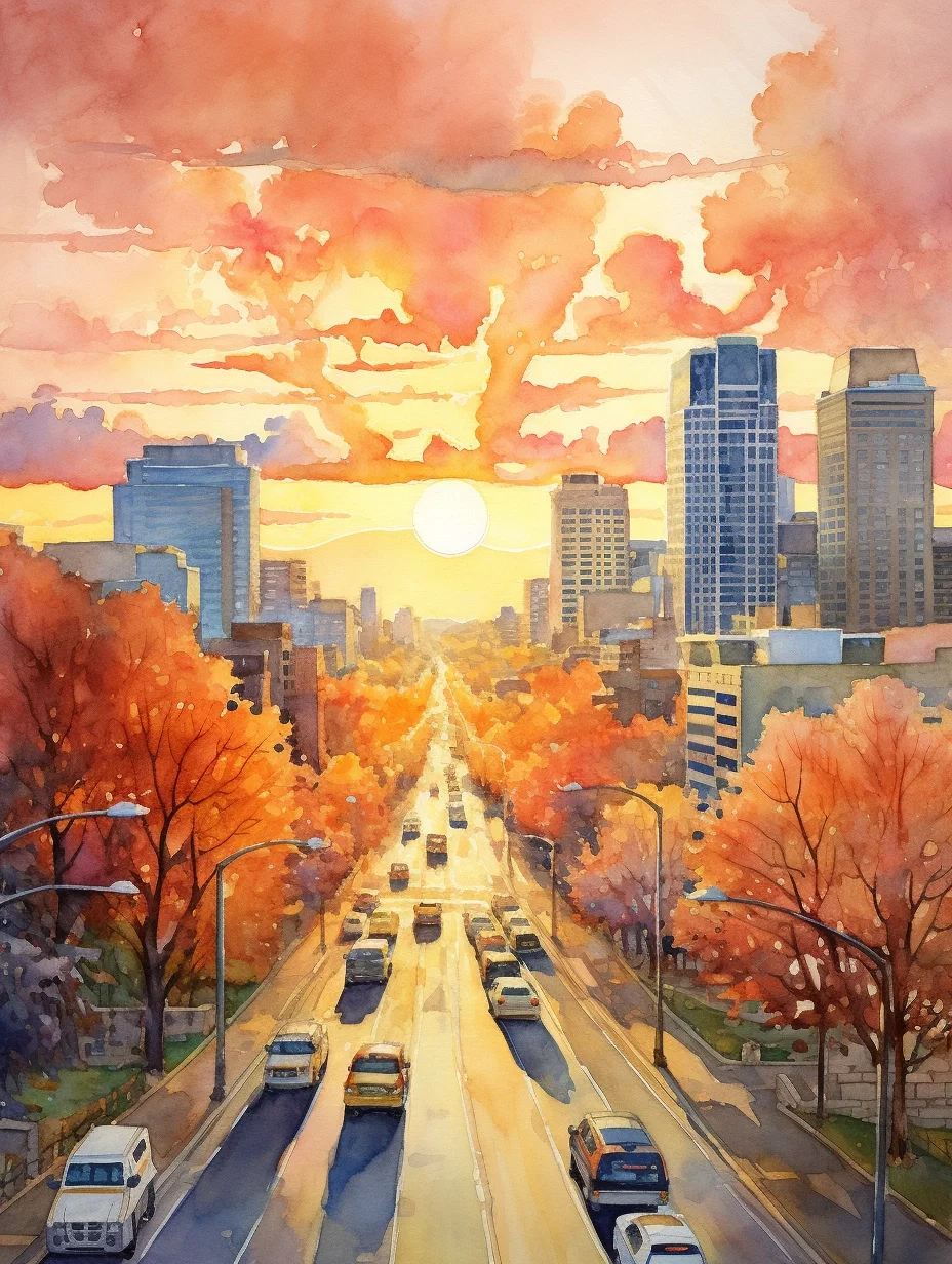 AI水彩:城市里的阳光大道