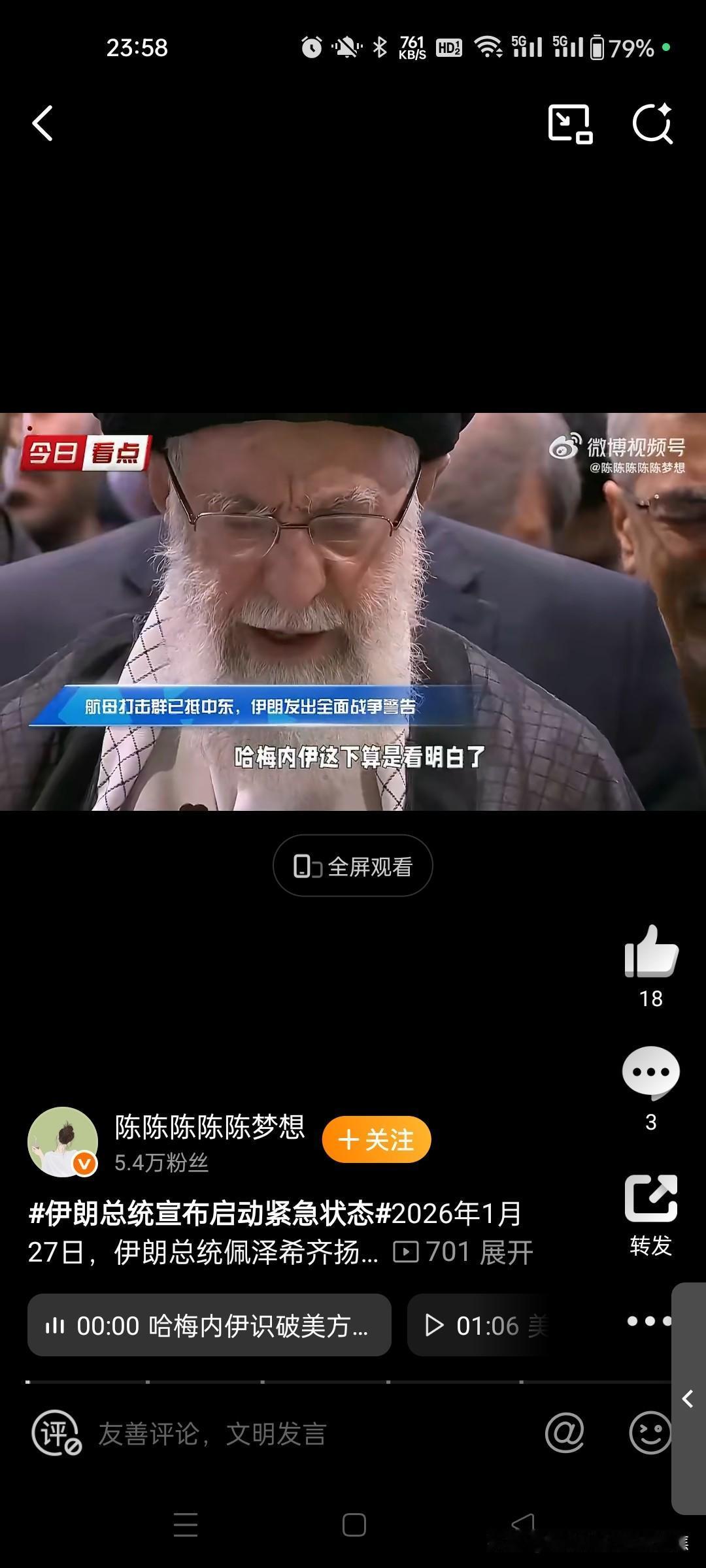 伊朗总统1月27日宣布全国进入紧急状态,核心举措包括下放省级行政决策权、加速生活物资供应链建设,以应对美以军事威胁升级可能引发的战争风险。@中国新闻网89中国新闻网 🔄 一、紧急状态的直接动因与核心措施 军事威慑升级 美国总统特朗普宣称“庞大舰队正驶向伊朗”,规模“超过此前派往委内瑞拉的舰队”,并威胁“下次打击将更猛烈”。美军“林肯”号航母打击群已抵达中东水域,配合约300架战机及核潜艇部署,可在1-2天内发起攻击。以色列同步进入最高警戒状态,形成对伊朗的军事合围。@北京日报37 伊朗革命卫队警告:若遭袭击,将封锁全球40%海运石油必经通道霍尔木兹海峡,打击范围“不仅限于美军基地”。@参考消息 行政与物资双轨备战 权力下放:各省省长获权直接对接司法、交通等部门,在中央政府遇袭时自主决策,避免官僚程序延误。此举旨在构建“战时平行政府”机制,防范“斩首行动”导致指挥瘫痪。@看看新闻Kn...18 物资保障:开通生活必需品进口“绿色通道”,重点确保粮食、药品供应,应对潜在封锁引发的短缺危机。当前伊朗通胀率超42%,食品价格年涨72%,经济困境加剧战备压力。@Aster存...148晶刚专属陈陈陈陈陈梦想北京日报参考消息 💥 二、伊朗的军事反制与战略威慑 非对称作战能力 伊朗已分散部署地下导弹部队,反舰导弹进入发射位。卡德尔巡航导弹(射程400公里)可威胁美军航母,宙斯盾系统对其拦截率不足40%。@连线记者11 宣称拥有超2000枚中程弹道导弹,可覆盖中东所有美军基地,采用公路机动发射规避打击。@陈陈陈陈陈梦...47 “成本强加”战略 伊朗拟以低成本反舰导弹集群攻击高价值目标(如航母),通过“击沉一艘少一艘”打击美军士气。德黑兰市中心广场出现巨幅宣传画,描绘美军航母遭导弹击沉场景,强化心理威慑。@阿卡宇航1145连线记者二孩困扰何天恩 🌐 三、地区博弈与国际反应 中东国家拒成冲突跳板 沙特、阿联酋明确拒绝美军使用其领空、领土攻击伊朗,强调“中立维护地区稳定”。阿联酋外交部声明:“不允许本国资源用于对伊军事行动”。 大国斡旋与风险预警 中国外交部呼吁“武力解决不了问题”,俄罗斯支持伊朗维护主权。专家分析指出,特朗普政府仍在权衡打击伊朗的“性价比”,担忧陷入战争泥潭重蹈伊拉克覆辙。@央视网3145央视网 ⚠️ 四、潜在风险与局势走向 内部隐患与外压共振 伊朗近期因经济危机爆发全国骚乱,断网管控难掩民生困境,美以借机煽动“政权更迭”。情报显示150余名骚乱核心成员与境外势力关联,渗透风险加剧。17 冲突临界点 若美以发动有限打击(如核设施),伊朗誓言升级为“终极战争”,将战火扩至整个中东。反之若威慑生效,双方或重回谈判桌,但伊核协议等核心矛盾未解。@何天恩47 当前局势处于“火药桶待燃”状态,军事部署与外交喊话同步推进。伊朗紧急状态本质是以行政韧性对冲军事风险,而霍尔木兹海峡的能源咽喉地位,或将迫使美以在动武前重新权衡全球能源链断裂的代价。8