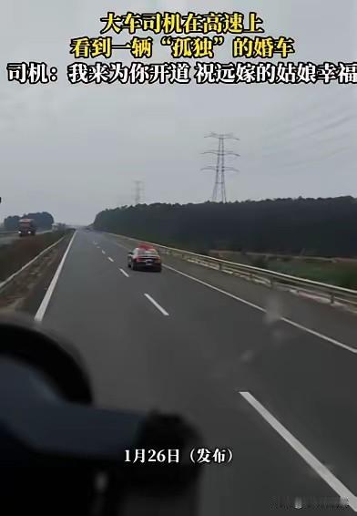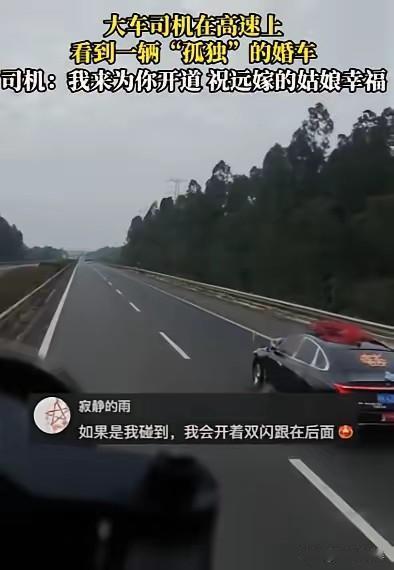 看哭了!广西,一位大车司机跑高速,突然看到前面一辆黑色轿车打双闪,开始还以为遇到了问题,可靠近一看,司机瞬间明白,这是一辆“孤独”的婚车,里面坐着的是一位远嫁姑娘,随后司机做了一个暖心的举动 那是广西境内一段灰蒙蒙的高速路,雨丝裹着雾气贴在挡风玻璃上。跑了十几年长途的老周正叼着烟,盯着前方路面,忽然瞥见左侧车道有辆黑车一直闪着双跳灯。他心里咯噔一下,以为是爆胎或者没油了,刚准备减速靠过去问问,车头那簇歪歪扭扭的粉色喜字突然撞进眼里。 老周揉了揉眼睛。喜字旁边还贴着张手写的“新婚快乐”,字里行间透着股仓促的温柔。后座没有伴娘团的嬉笑,副驾也不见伴郎的身影,只有新娘一个人缩在座位里,头靠着车窗,手里攥着半块没吃完的喜糖。 老周瞬间鼻子就酸了。他跑这条线见过太多热闹的婚车车队,清一色的豪车排成长龙,鞭炮声能盖过发动机的轰鸣。可眼前这辆孤零零的黑车,像个被世界遗忘的标点,在空旷的高速上显得格外扎眼。他想起自己远嫁湖南的妹妹,当年也是这样一个人拖着行李箱坐了十小时火车,电话里还笑着说“没事,我自己能行”。 没多想,老周把自己的大货车开到了黑车前方。他打开双闪,稳稳压着80码的速度,像一座移动的盾牌。后视镜里,那辆黑车始终跟在他身后,粉色喜字在雨雾里忽明忽暗。他知道,这姑娘正奔向几百公里外的婆家,往后逢年过节回家,都要算着假期抢票;想吃一口妈妈做的老友粉,得等上大半年;受了委屈想扑进爸妈怀里,只能对着手机屏幕掉眼泪。 这条高速上每天都有无数人奔向远方,有人为了谋生,有人为了爱情。可远嫁的姑娘,是把自己连根拔起,种在别人的土壤里。老周想起服务区见过的那些新娘,有的被一群人簇拥着,有的却独自抱着婚纱赶路。热闹和孤独的对比,比任何电影都戳人。 有人说远嫁是一场豪赌,赌的是婆家的良心,赌的是老公的担当,赌的是自己能在陌生城市扎下根。民政部数据显示,跨省婚姻的离婚率比省内婚姻高出17%,这冷冰冰的数字背后,是无数远嫁姑娘的眼泪和遗憾。老周拉货时见过太多远嫁的姑娘,有的在菜市场为了几毛钱和小贩争执,有的抱着孩子在公交站哭,有的连回趟娘家都要等孩子放暑假。 评论区里有人说“我就是远嫁的,现在连个说话的人都没有”,也有人说“只要老公对我好,远点怕什么”。其实哪有什么标准答案,只有冷暖自知。就像这辆婚车,有人看到的是浪漫,有人看到的是心酸。 如果你是这个姑娘,你会为了爱情远走他乡吗?是赌一把未来的幸福,还是守在爸妈身边安稳一生?评论区站队!👇