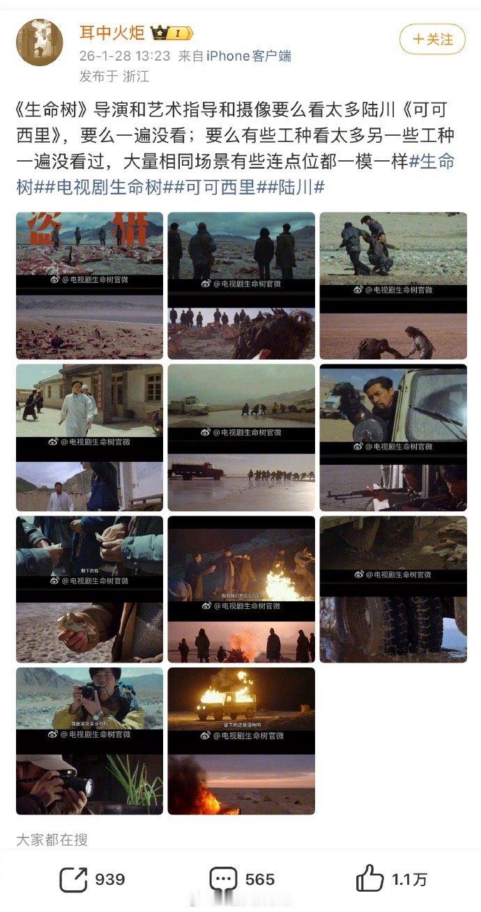 有网友指出《生命树》和陆川的《可可西里》有大量相同场景,有些连点位都一模一样。大