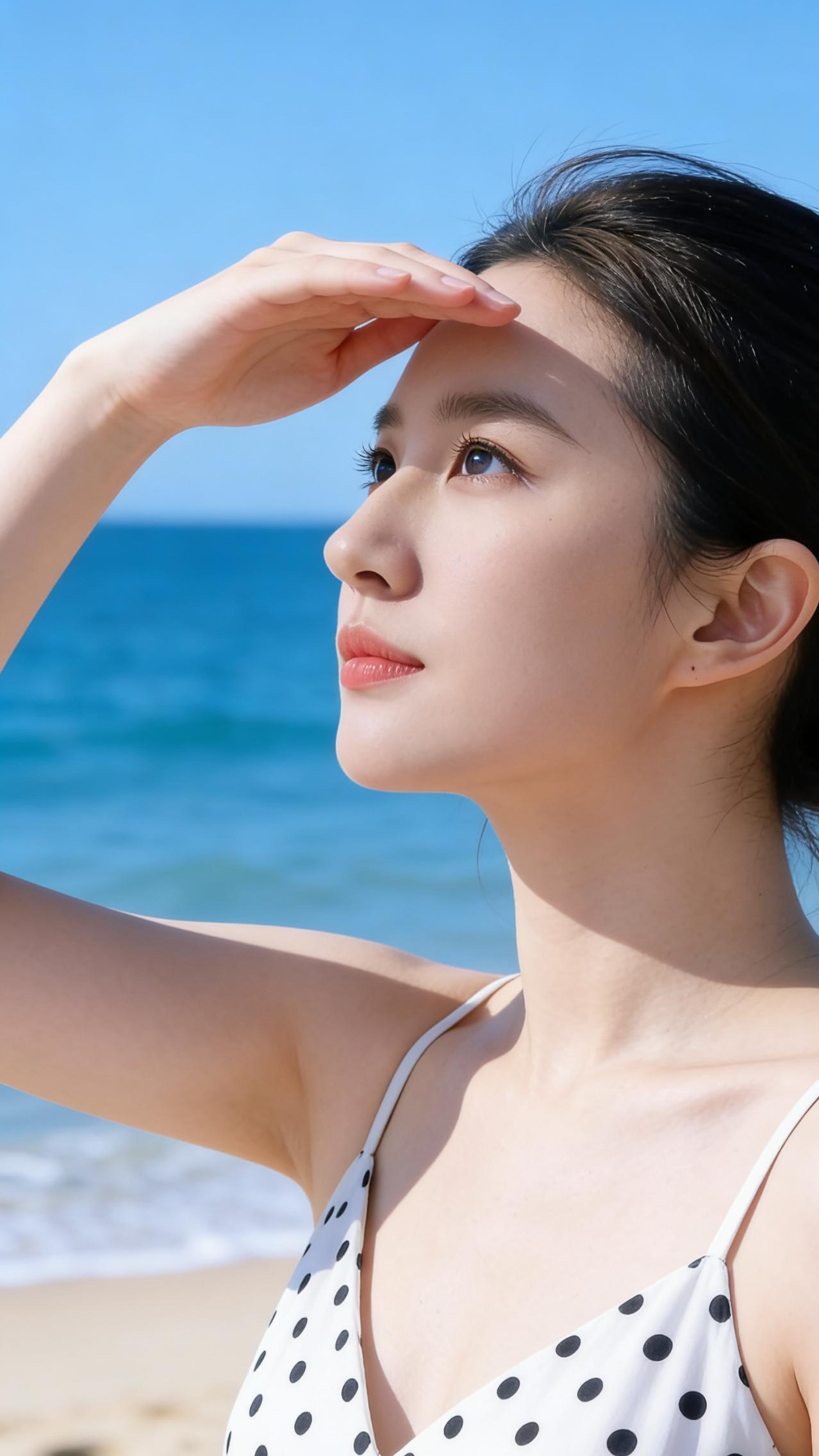 沙滩上的温柔时光,少女与海浪的浪漫邂逅。