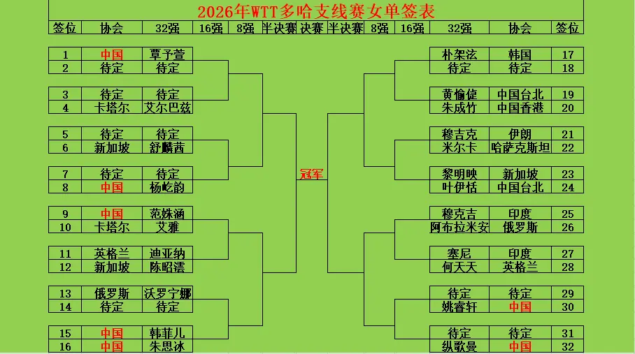 2026年WTT多哈支线挑战赛签表。2026年WTT多哈支线挑战赛签表...