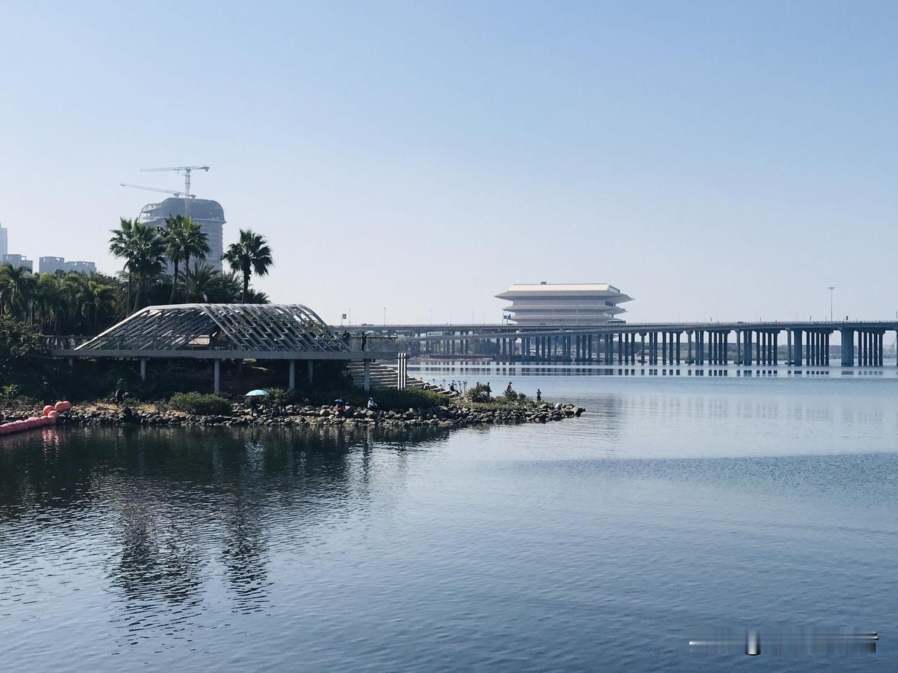 原来公园还能这样建?自从前海湾有了欢乐港湾和前海石公园,深圳其它公园我就很少逛了。我情有独钟这里一是我亲历了这片公园从空白到落成的整个过程;二来这公园天生丽质,而它的规划设计又的确是不同凡响。 公园就在前海湾畔,宝安、南山兄弟般在这里亲密联手打造。你推一个文艺、娱乐,我推一个休闲、观光,错位又浑然一体。 @深圳跋涉者 我们沿着动线来感受一番:走出深圳湾区书城,向左就是欢乐剧场、L型音乐厅,然后凭栏眺望那条工业色彩浓郁,显得粗犷的公路大桥。 向右,128米高的摩天轮。过桥,运气好时,可以看到低空飞行器停在场地上。走两步,可以拾些野趣,保留着的沼泽池里,树木葱茏,不时有三两只白鹭或翩翩起舞,或低头觅食。 人走人的路,鸟过鸟的河。 跨过双界河,就是南山境内,这里可以一览整个海湾。搬个躺椅,吹着海风,吃点小零食,就开启了休闲度假模式,不亦乐乎?