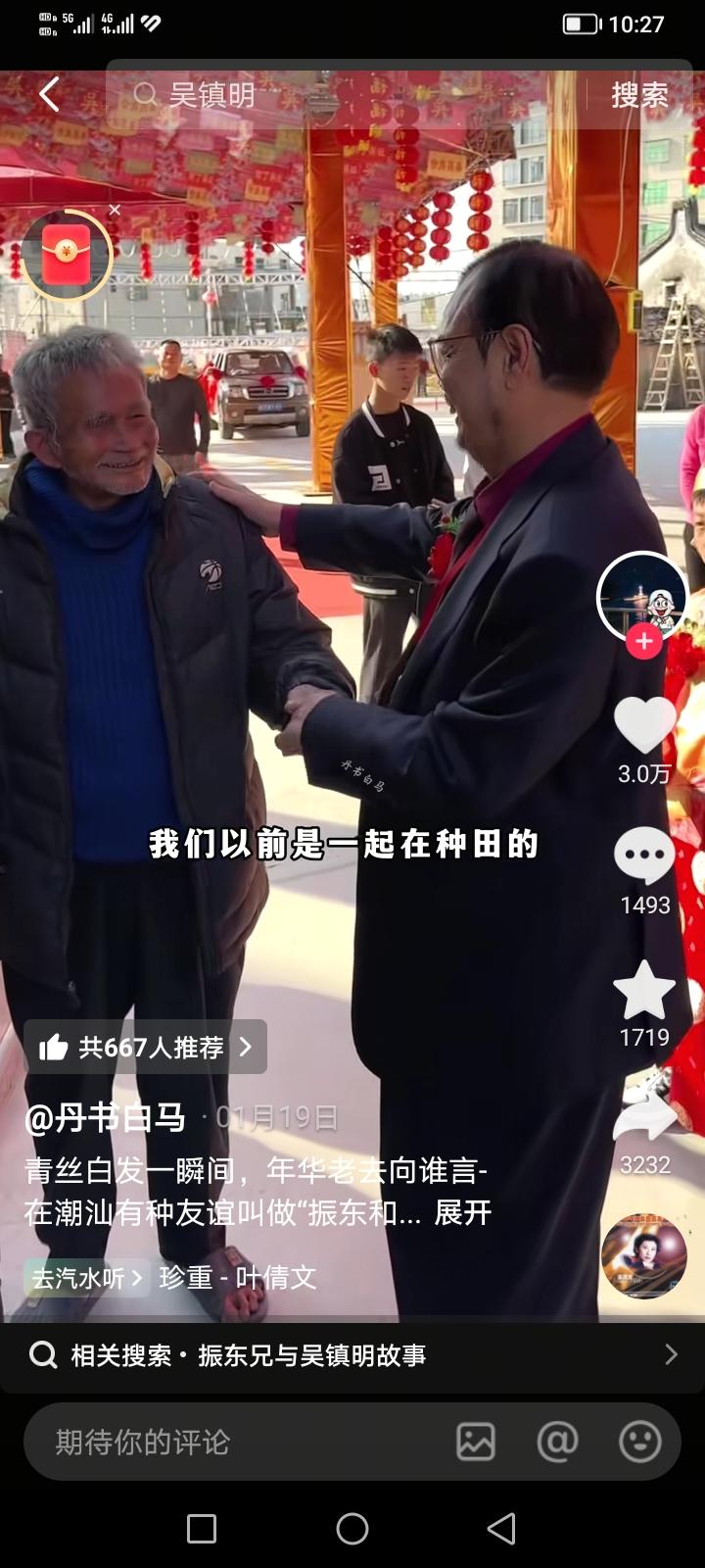 这几天网上“潮汕振东兄”很火,原因很简单,一个是亿万富翁,一个是一辈子在家乡务农的两人,形成了强烈的反差。于是又有很多人把自己带入“振东兄”的角色,也不知道网友们什么毛病,总喜欢带入别人的角色,我还是想说,你们很多人总喜欢高估自己,其实大部分人根本不如“振东兄”。“振东兄”80岁的年纪,还有这么好的身体,这么好的精神,你能保证自己在80岁时候有这么好的身体吗?“振东兄”生长在潮汕,而且我看了他视频,家境也是非常不错的,“振东兄”在这次修建祠堂中捐款15万,你看看你现在的生活,你拿的出来15万吗?你凭什么认为自己可成为“振东兄”?“振东兄”有个亿万富翁的发小,你有吗?其实我一直想对网友们说,不要总把自己带入别人的角色,因为你根本就不如别人。(图片信息来源:丹东白马,振东兄)振东老叔 幸福和什么最有关系 能否用一句话说出幸福是什么 振东精神