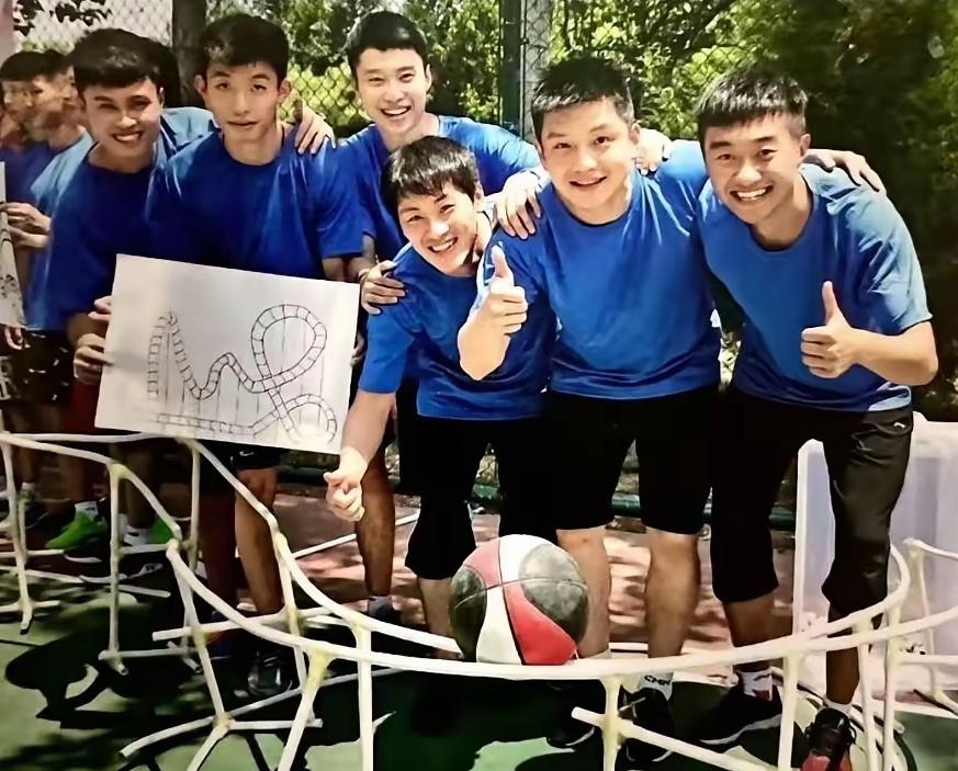 6位衣着统一、笑意粲然的男乒球员同框:我认出了浓眉小眼的赵子豪,目若朗星的樊振东,眉似新月的周恺与素齿如贝的周启豪,中间两位笑容灿烂的帅哥是谁?