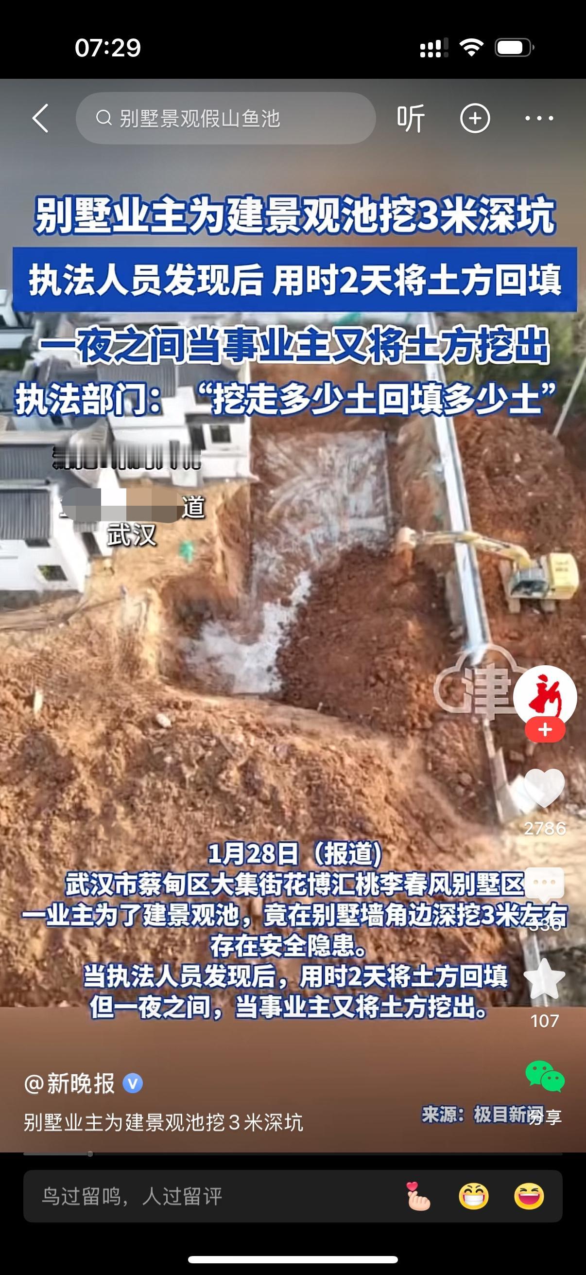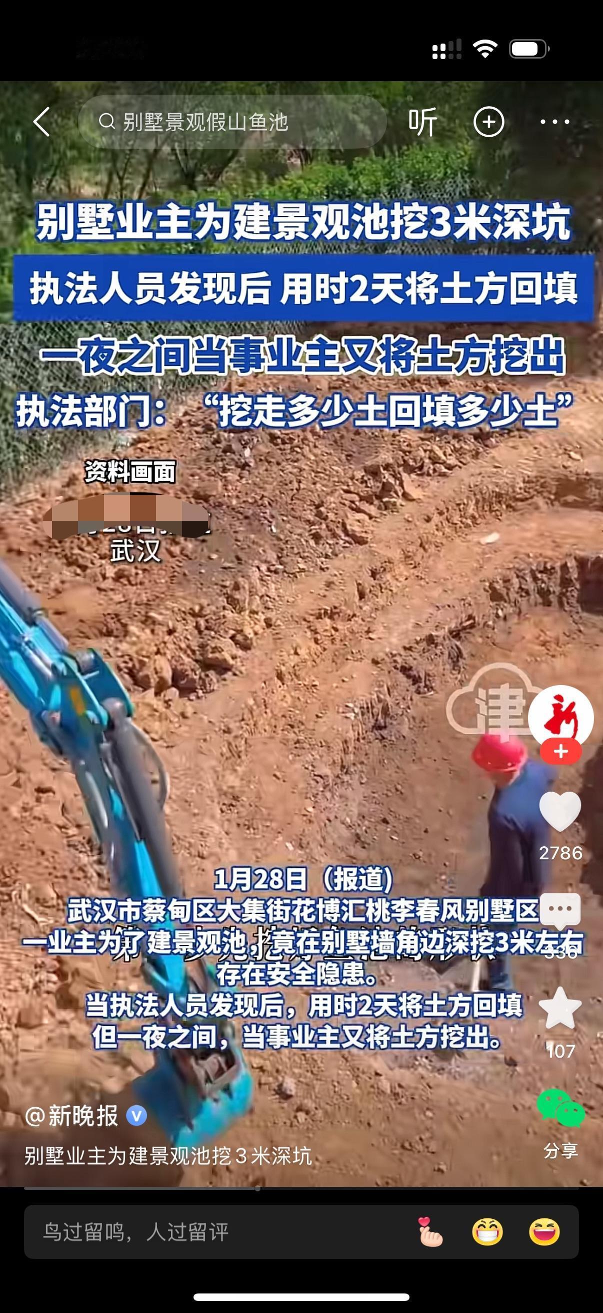 别墅业主为建景观池挖三米深坑。执法人员发现后,用时两天将土方填回。可没想到,业主一夜之间又将土方挖出。执法部门给出严厉警告,挖走多少土填回多少土。这个世界太疯狂,一个小小的业主这样胆大妄为搞违建?谁给你的勇气?