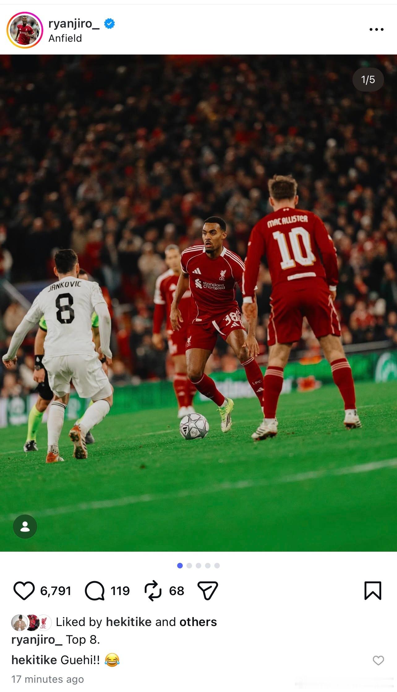 笑死我了,格拉文贝赫赛后晒照,埃基蒂克评论区回复:“格伊!!”