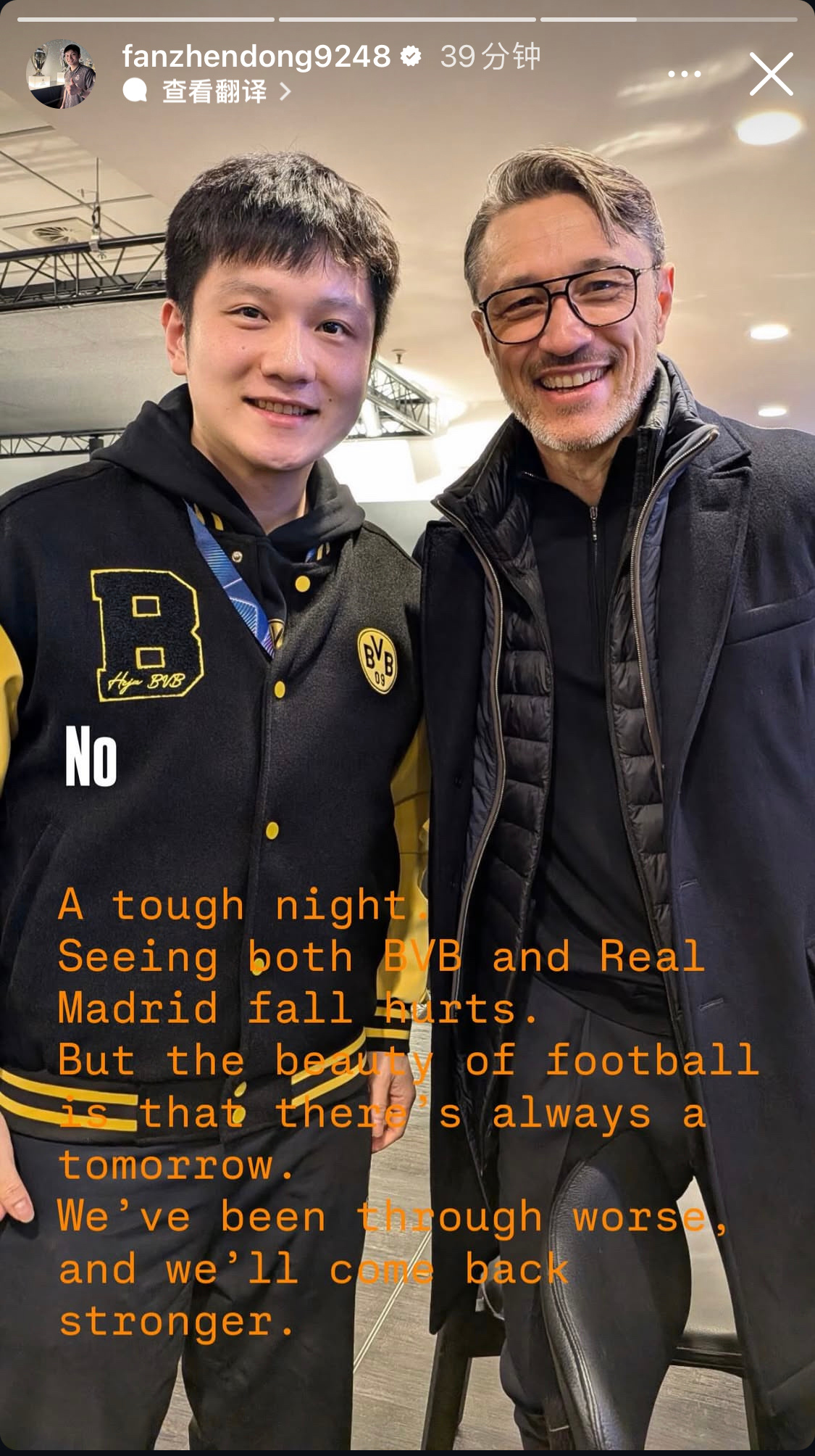 樊振东波尔现场观战多特东哥身在多特现场,心系主队皇马本菲卡4比2皇马