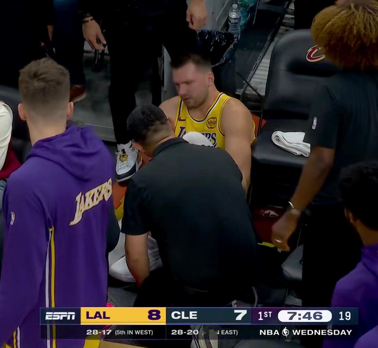 东契奇脚踩到骑士主场地板边缘崴了……骑士主场这个是老问题了,蛮呆逼的。湖人vs骑士