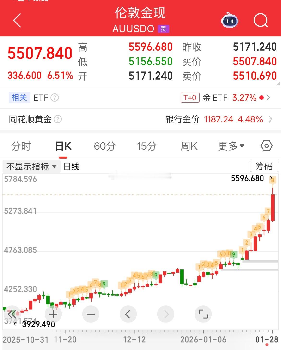 现货黄金突破5500美元 四天狂涨500美元 现货黄金首次突破5500美元/盎司大关,本周金价从略低于5000美元的水平一路狂飙,连破6道整百关口,周涨幅超500美元或10%。黄金