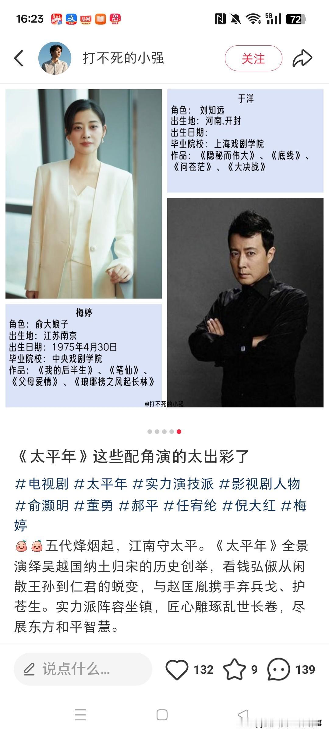 追剧中被一众配角狠狠圈粉,老戏骨稳扎稳打,年轻演员也超亮眼,每个角色都立得住! 有人讨论董勇和倪大红换角是否更合适,个人觉得完全没必要:董勇演冯道适配度拉满,深远的气质拿捏精准,倪大红演大奸似忠更是游刃有余,两位老戏骨各有韵味。 94年任宥纶太惊喜了,演的石重贵远超预期,台词功底在线适配正剧,仗剑入宫的背影更是让人印象深刻!贾宏伟饰演的张彦泽更是高光,戏份不多却让人过目不忘,把嗜血反派的残暴演到骨子里,看了又恨又怕,这个反派塑造得太成功了。 胡思进的老辣、水丘公的君子气、耶律德光的强气场,俞灏明演的柴荣也自带侠气,每个配角都各有特色,演得入木三分。 《太平年》这波配角群像真的绝了!哪个角色最让你印象深刻?评论区说说~