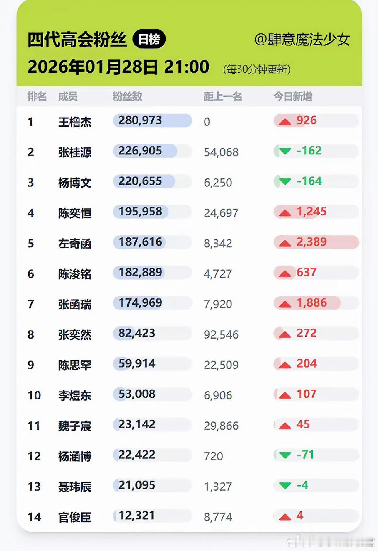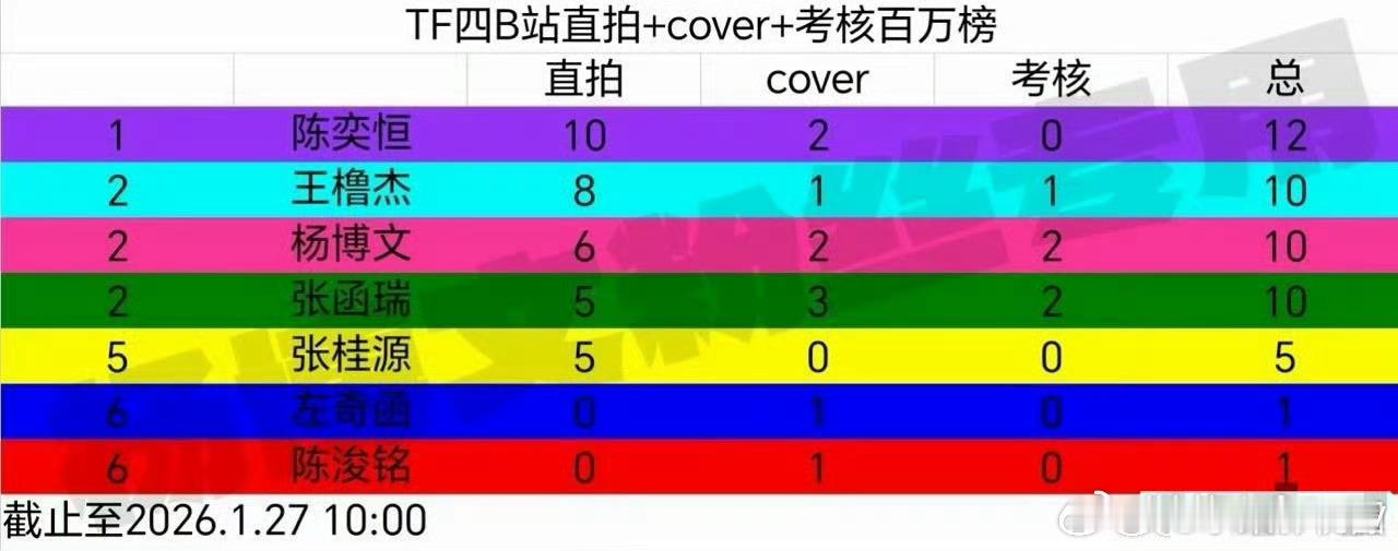 TF四代各项书局汇总表,看看哪一位帅哥关注度最高?王橹杰 张桂源 杨博文 陈奕恒 左奇函 陈浚铭 张函瑞 陈思罕