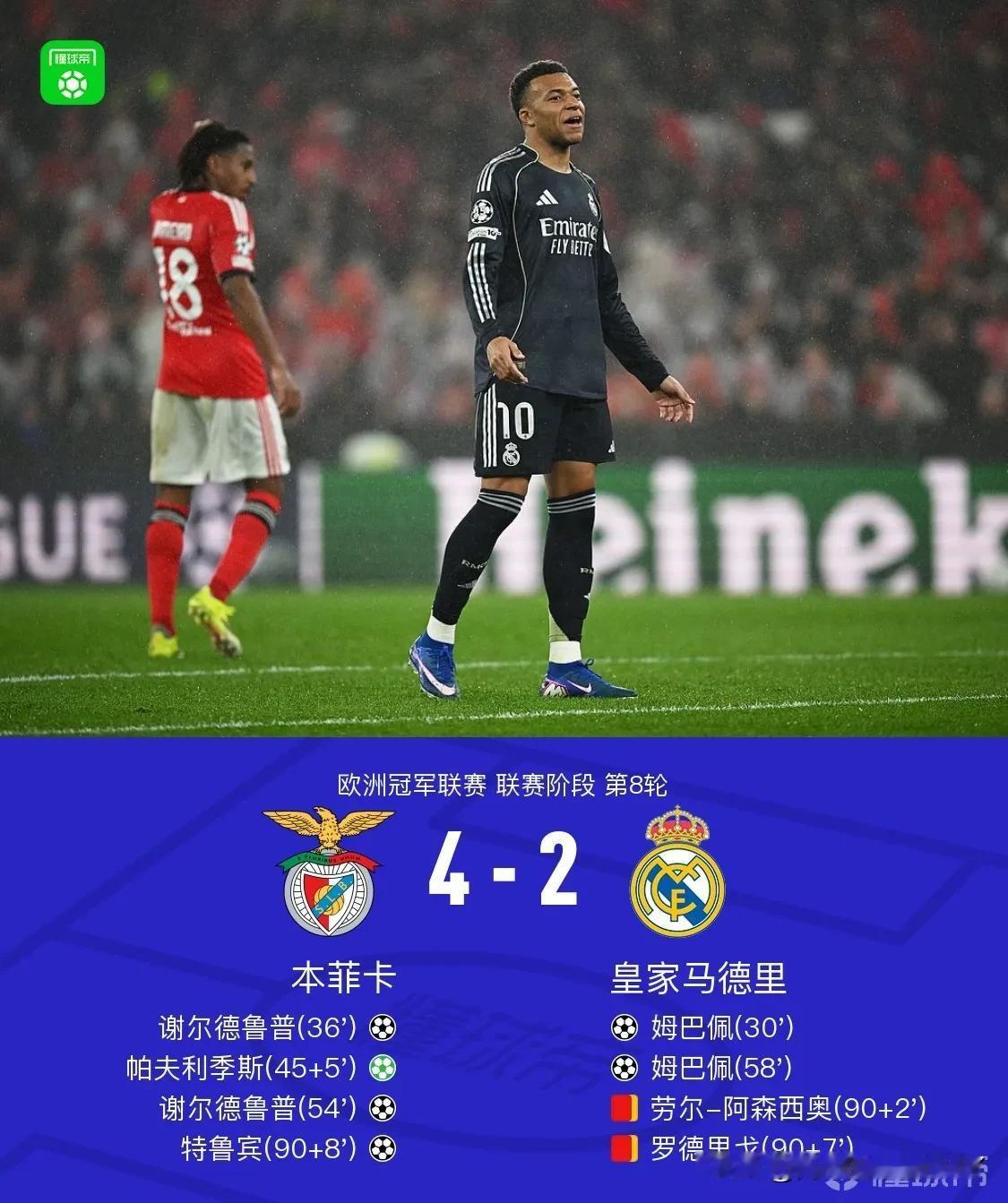 皇马“放水”遭反噬,本菲卡疯狂门将头球改命运:一场净胜球背后的生死博弈