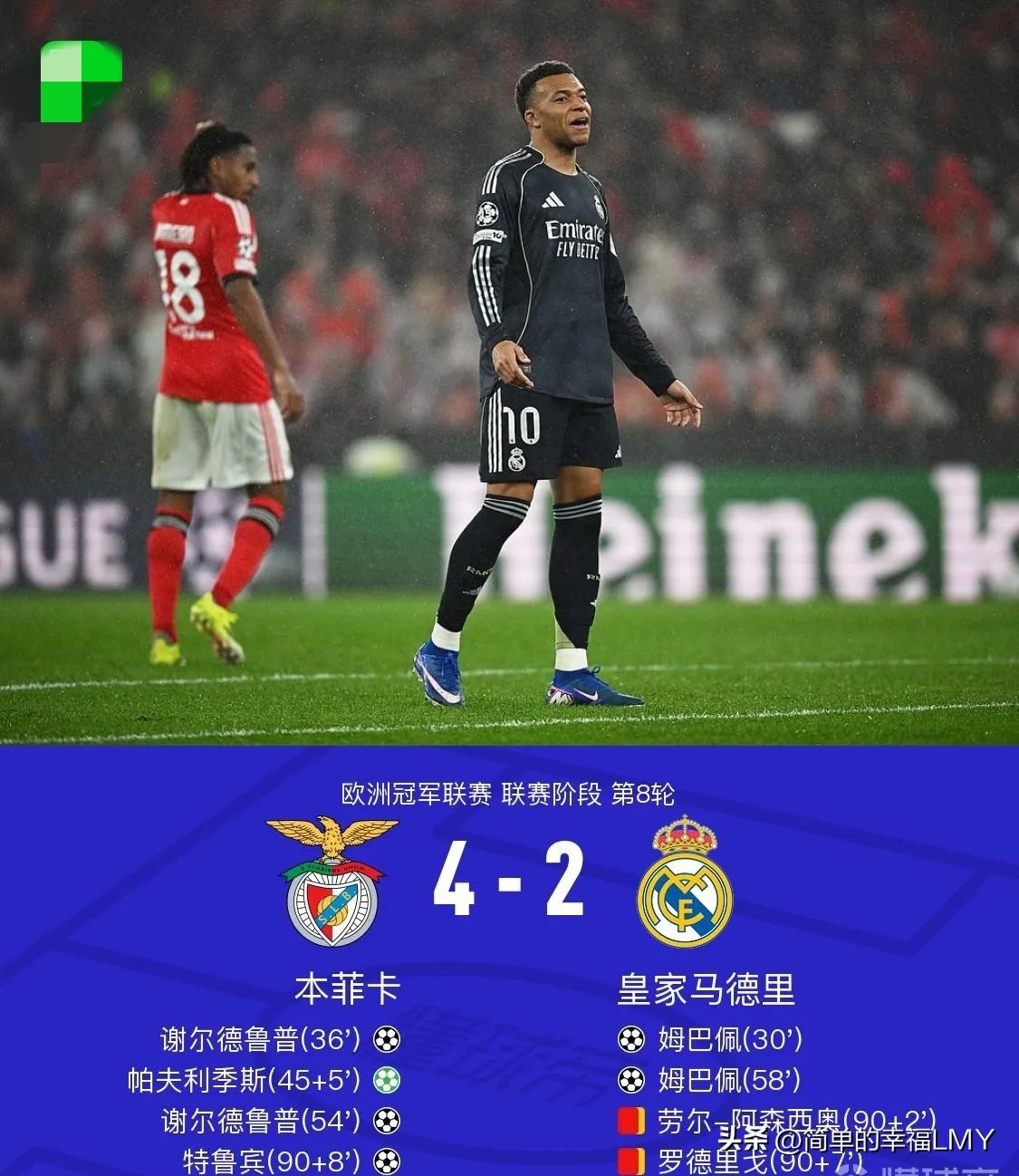 皇马2-4本菲卡,范志毅赛后点评,句句在理! 他说姆巴佩成不了超巨,金球奖不该给这样的球员,这话够直接。看看场上表现,4次一对一丢球,连反抢的念头都没有。 皇马没他的时候,拿了两个欧冠冠军;有了他,反倒像被捆住了手脚,队友都不知道该怎么踢了。巴黎更是现成的例子,有他在,多少年摸不到欧冠奖杯;没了他,反倒捧起了冠军。 这难道还说明不了问题?足球终究是十一个人的运动,个人数据再花哨,团队打不出章法,又有什么用?就像一台机器,少了哪个零件都转不动,可要是有个零件总卡壳,整机也得跟着掉链子。 姆巴佩的天赋没人否认,可少了点团队意识,缺了点拼劲,再强的个人能力,也撑不起一支球队。再说说穆里尼奥,上一场本菲卡输球,几乎站在了出局的悬崖边,不少人都在念叨,穆帅的战术早就过时了,跟不上现在的潮流了。 等到这一场要对阵强大的皇马,更是没人看好本菲卡,觉得他们只能认命。谁能想到,穆里尼奥硬是带着球队赢了下来,而且赢的是皇马。这就是足球的神奇之处,不到裁判吹响终场哨,你永远不知道会发生什么。 上一秒可能还在绝望边缘,下一秒就可能迎来转机。本菲卡的胜利,不光是球员拼出来的,更是穆里尼奥那股“不服输”的劲头带出来的。他总能在看似死局里,找到一线生机,这种能力,不是随便哪个教练都有的。 有人说穆里尼奥太固执,战术太保守。可别忘了,足球赢球才是硬道理。他能根据对手调整策略,能把球队的士气拧成一股绳,这就是本事。就像这场对皇马,他没硬碰硬,而是抓住对方的松懈,打了个措手不及。 这种临场的应变,比那些花哨的战术板有用多了。对比姆巴佩的“独”和穆里尼奥的“韧”,更能看出足球的真谛。个人英雄主义或许能赢一时,可长久的胜利,靠的还是团队协作,靠的是不放弃的精神。 皇马这场输球,与其说是输给了本菲卡,不如说是输给了自己的傲慢。有了大牌球员就想走捷径,忘了足球最基本的拼抢和配合,不输才怪。范志毅的点评,戳破了很多人的幻想。 超巨不是光靠进球和数据堆出来的,得有担当,得有团队意识。金球奖要是颁给只看重个人表现的球员,那才真的失去了意义。足球的美,从来不是一个人的独秀,而是十一个人朝着同一个目标狂奔的模样。 穆里尼奥和本菲卡的胜利,给所有不被看好的球队提了个醒:别管别人怎么说,拼到最后一秒就有希望。这就是足球让人着迷的地方,它不看名气,不看身价,只看谁更想赢,谁更能扛。 这场2-4的比分,会被反复提起。不是因为皇马输得有多惨,也不是因为本菲卡赢得有多漂亮,而是因为它再次证明了:足球是圆的,一切皆有可能。 姆巴佩的表现成了反面教材,穆里尼奥的坚持成了励志故事,这就是足球,总能在输赢之外,给我们更多思考和感动。说到底,我们爱足球,不就是爱这份不确定性,爱这份为了胜利拼尽全力的倔强吗? 不管是球员还是教练,能读懂这一点,才算真的懂足球。