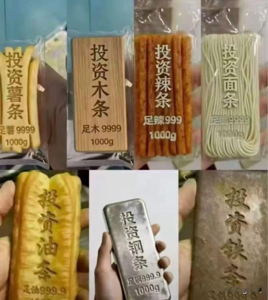 投资又不是只有金条银条一条路![抠鼻][抠鼻][抠鼻] 还可以投资铜条、铁条、木条、薯条、辣条、油条、面条!