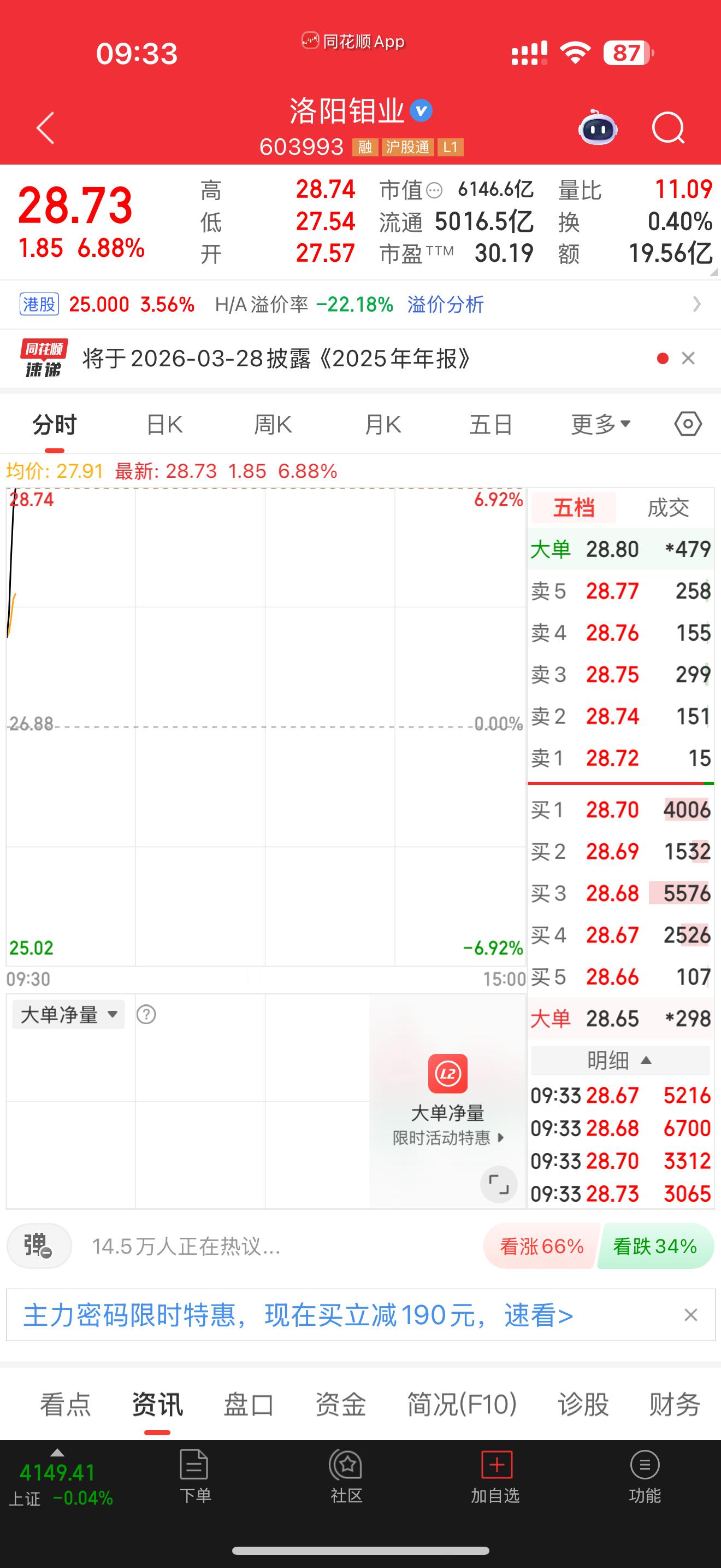 603993洛阳钼业强势起飞,恭喜跟上的朋友一起吃肉