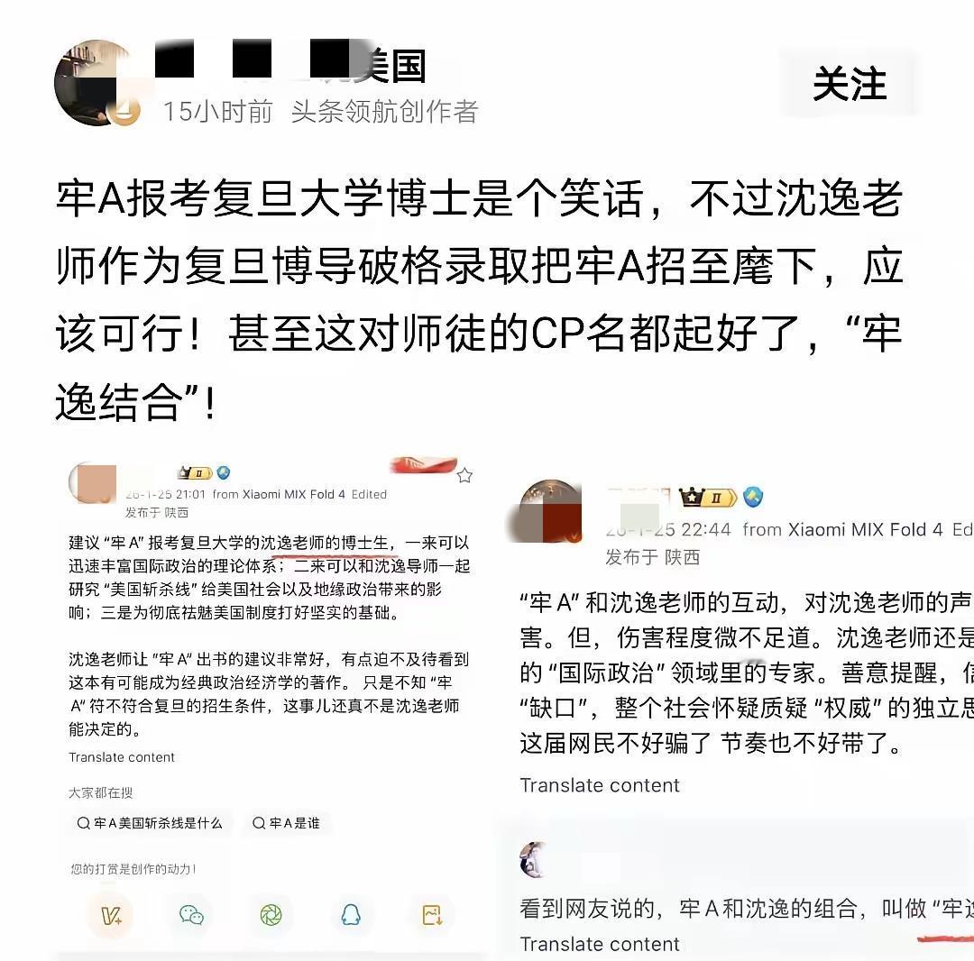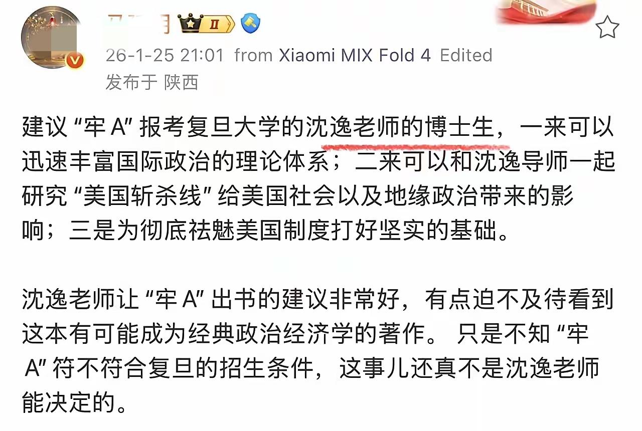 牢A动了哪些人的蛋糕? 看哪些人跳得最厉害就知道了。 各路大V现在没法反驳牢A的观点,因为牢A说的都是事实。 所以现在这些大V们开始阴阳怪气的说牢A个人的事情。 说实话,牢A的学识怎么样我不敢说,但牢A做的事确实可以说功德无量。 他配得上报考沈逸教授的博士生。