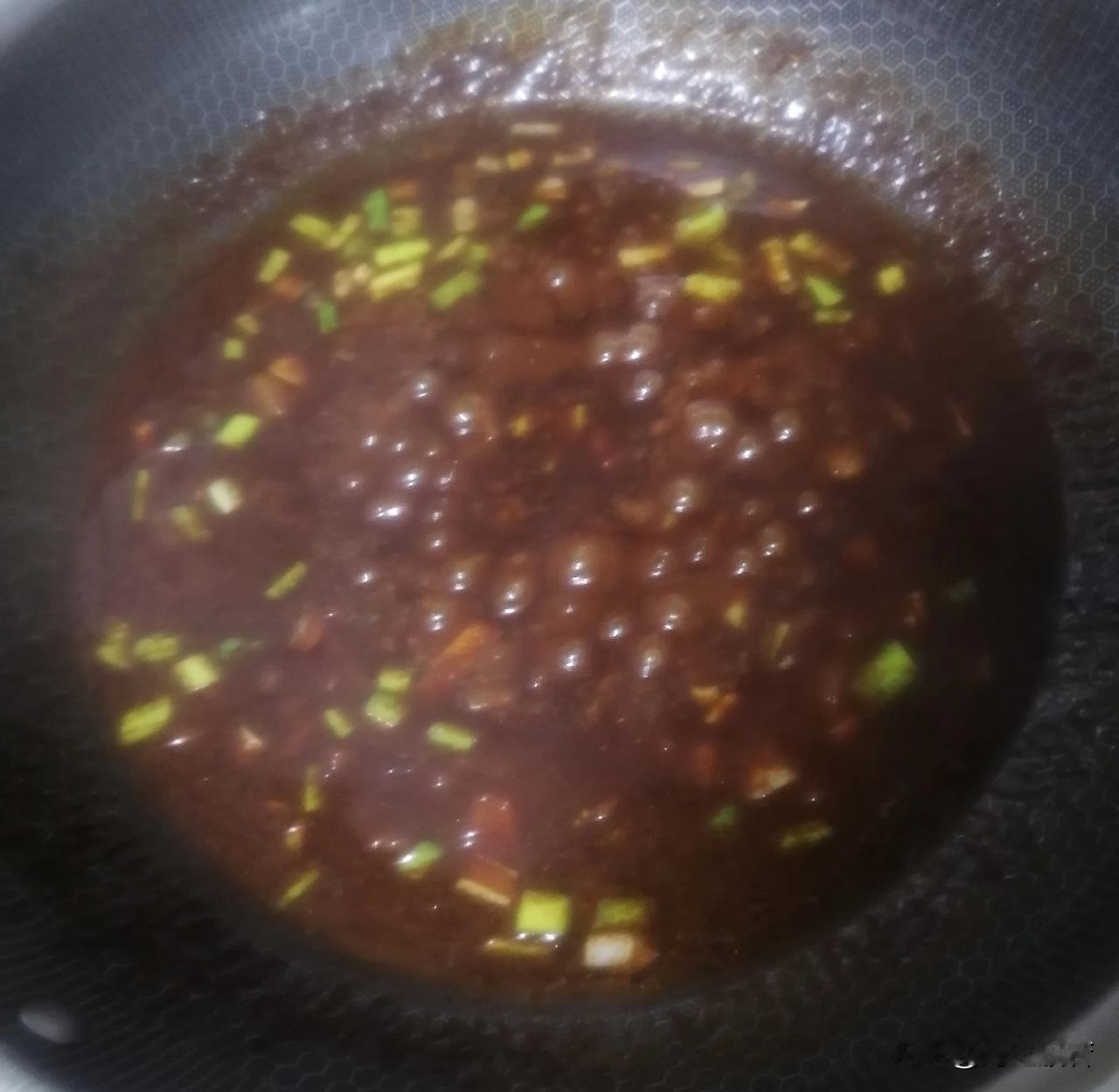 时间才是顶级的厨师。 做炸酱,小火慢熬,点缀上葱花,肉沫是笨猪肉,炸出油,再下锅大豆酱。不一会儿,小气泡就此起彼伏地往外冒,香味浓郁。东北人是喜欢酱的,纯纯的大豆酱,不用炸就可以蘸着吃,黄瓜蘸酱,土豆蘸酱,大葱蘸酱,白菜蘸酱,茄子蘸酱,简直是万物皆可蘸。都说东北人口味重,大概是和吃酱有关系吧。 炸酱需要有耐心,小火慢熬,不停地搅拌,以免粘锅。其实东北人吃的酱根本不需要炸,从酱缸里盛出一碗就可以吃了,纯绿色食品。炸酱还是到了京城才学会的,老北京炸酱面有名,关键就是炸酱,配上黄瓜丝萝卜丝,豆芽等等,可谓是色香味俱全了。 想起炸酱,是老爸今天吃鹅蛋时,无意间说,这炸酱真好吃,我就又炸了一碗,等回京前再多做出一些,留着老爸慢慢吃。