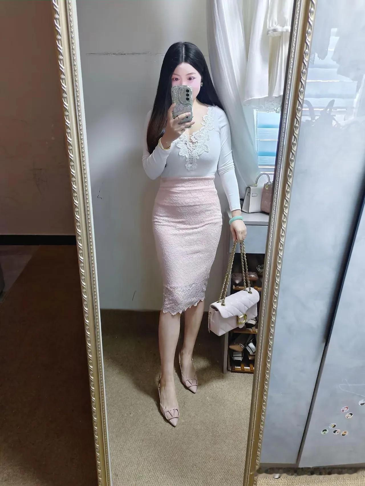镜中人影,粉裙飘飘。 美女们快来分享自己的穿搭吧! 职场穿搭怎样更显女人味?