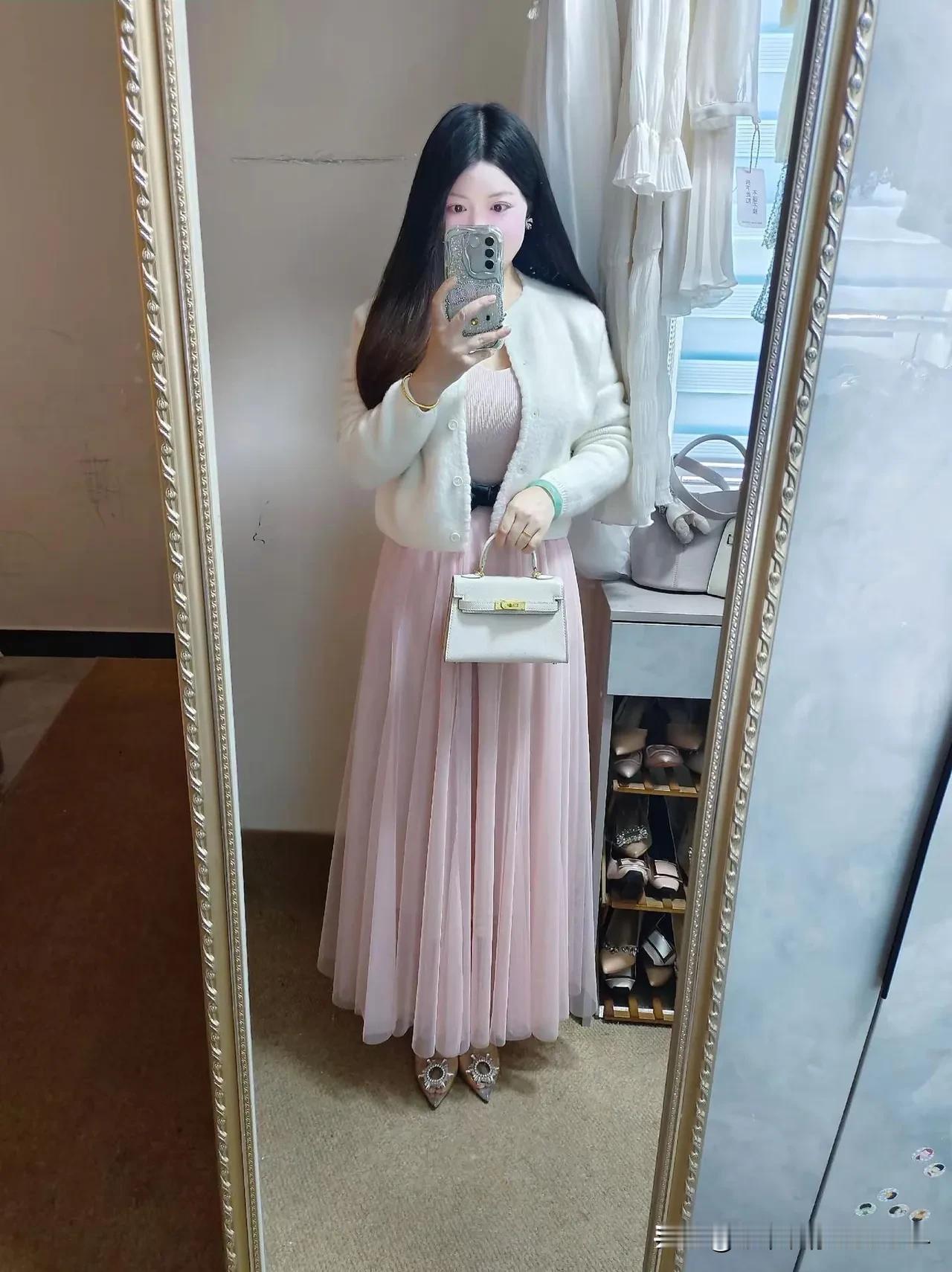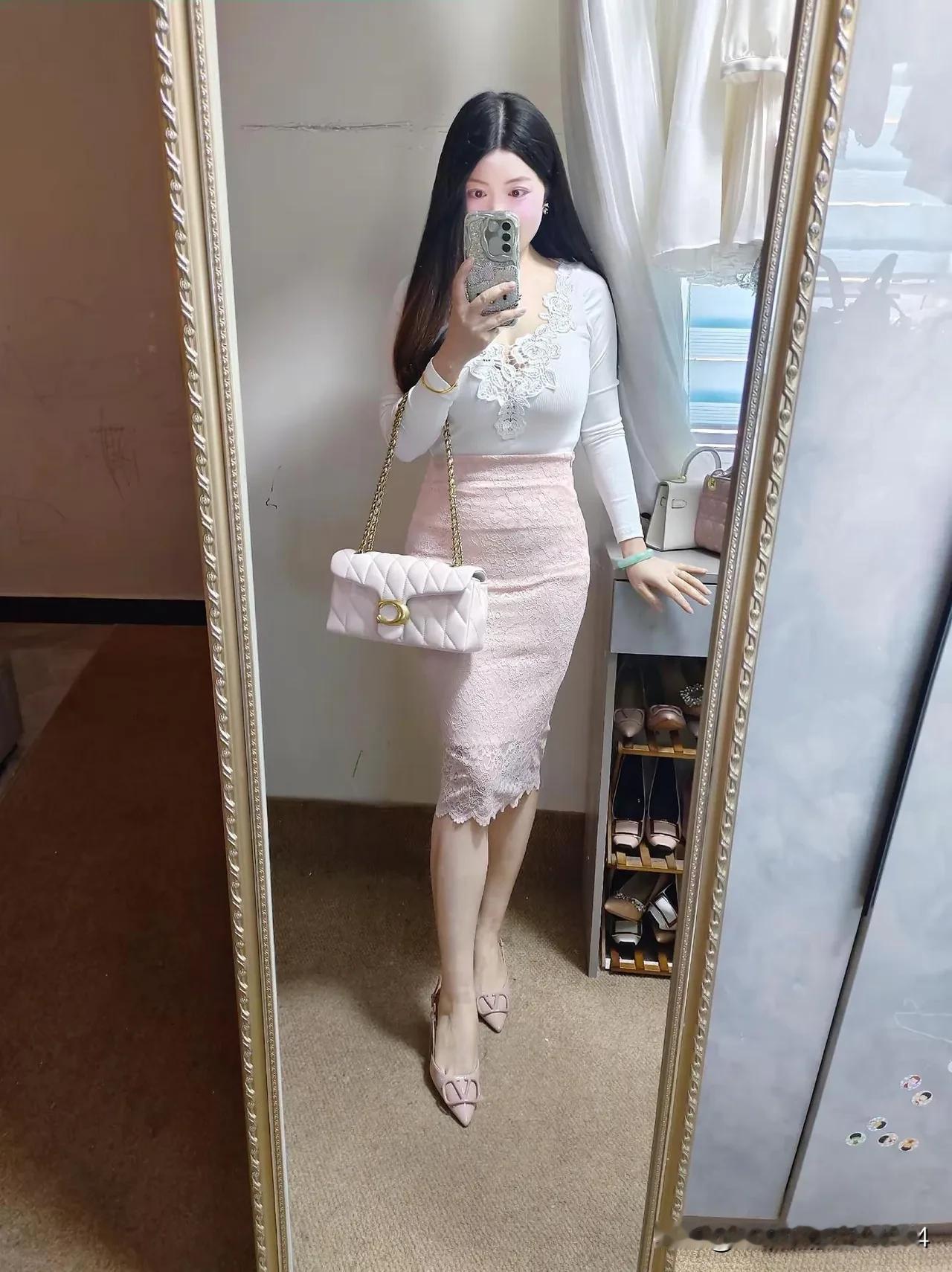 镜中人影,粉裙飘飘。 美女们快来分享自己的穿搭吧!职场穿搭怎样更显女人味?
