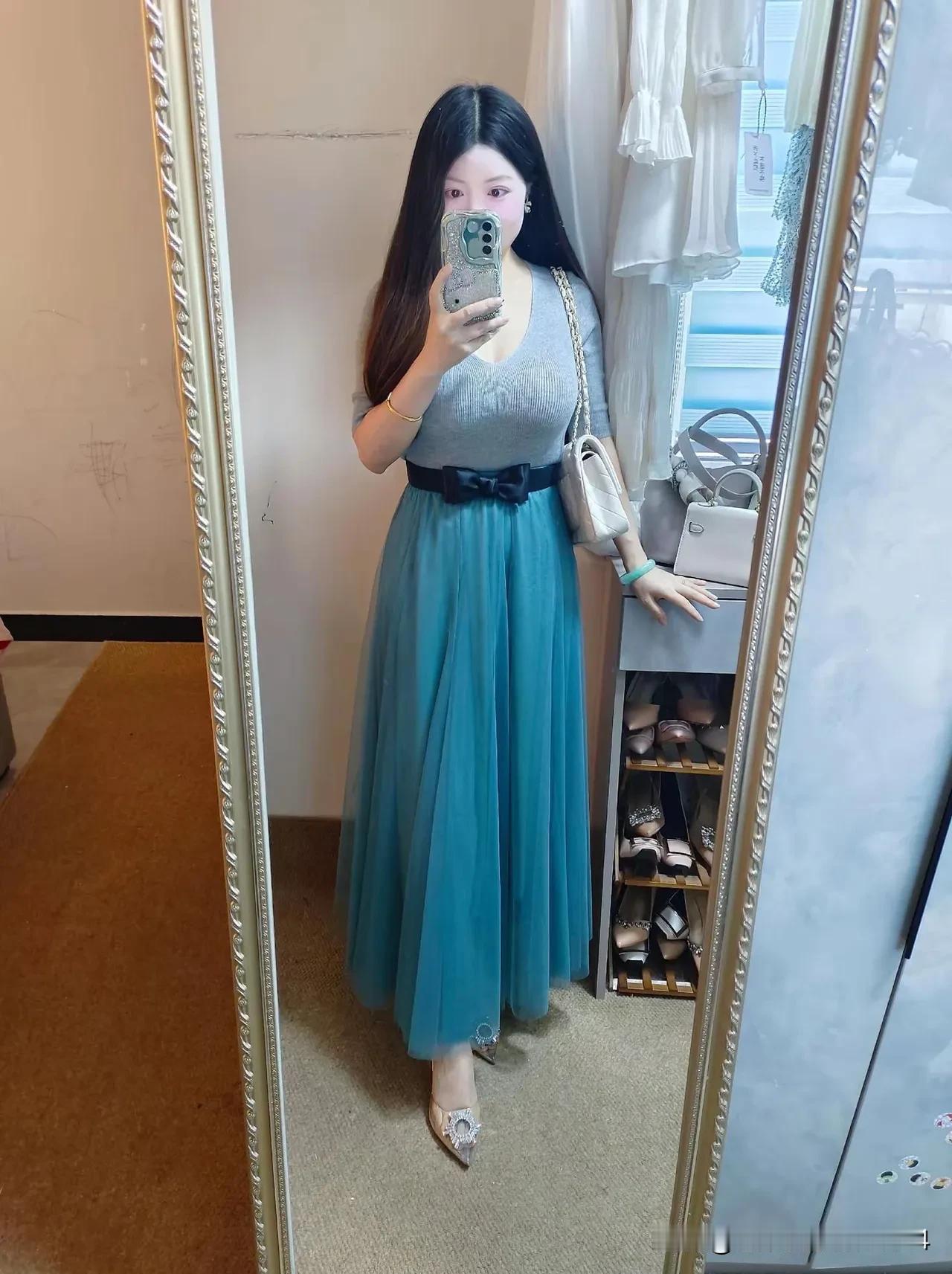 优雅长裙,甜美自拍,温柔气质,时尚穿搭!