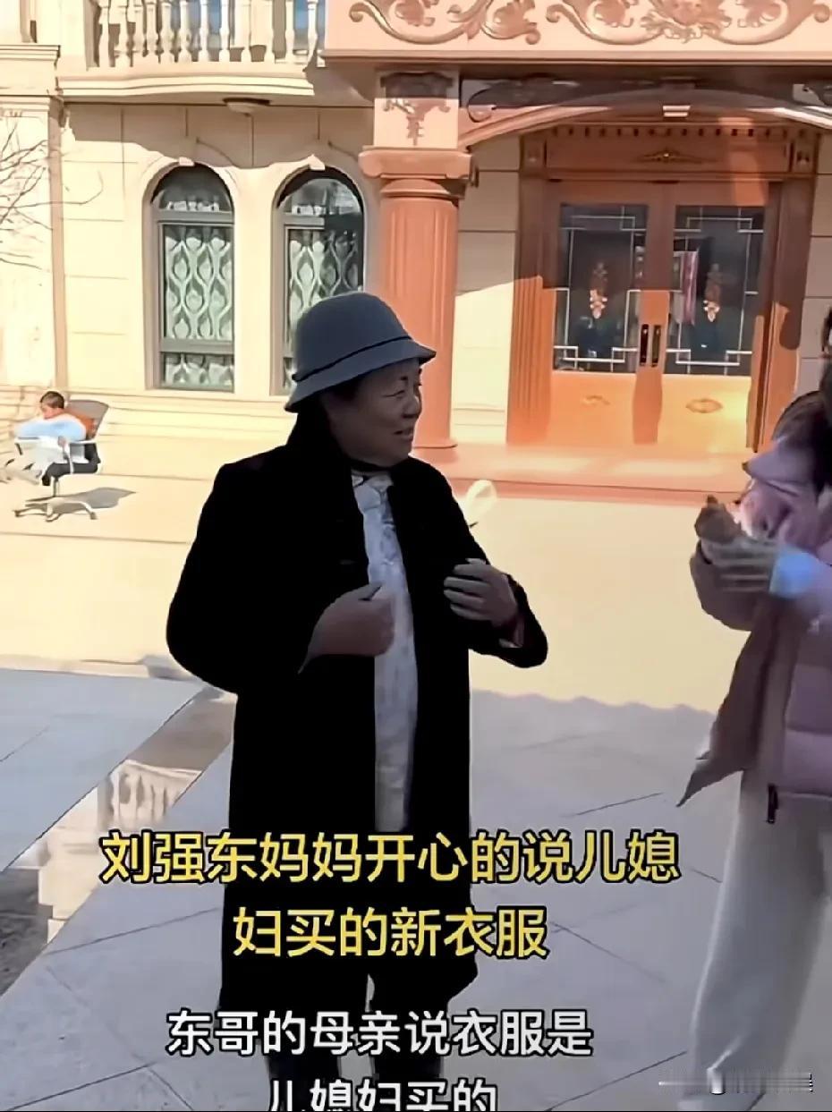 刘强东父母回乡,邻居对刘妈妈说,你这身衣服真好看。刘妈妈笑着对众人说:这是我儿媳妇买的,我过年就穿这身衣服。 说完这话,脸上的笑容挡都挡不住,心情非常好。刘妈妈也向众人展示了儿媳妇的“孝敬”:一件黑色的呢大衣,一件黑色的中式外套,还有一件浅色中式的内搭。 母凭子贵,看刘妈妈的脸相,下巴有痣,是个有大福之人。 儿子事业有成,感恩回馈乡亲,父母脸上有光。在乡里,刘妈妈和左邻右舍唠嗑,刘爸爸和老邻居们打打牌,日子好安逸啊。